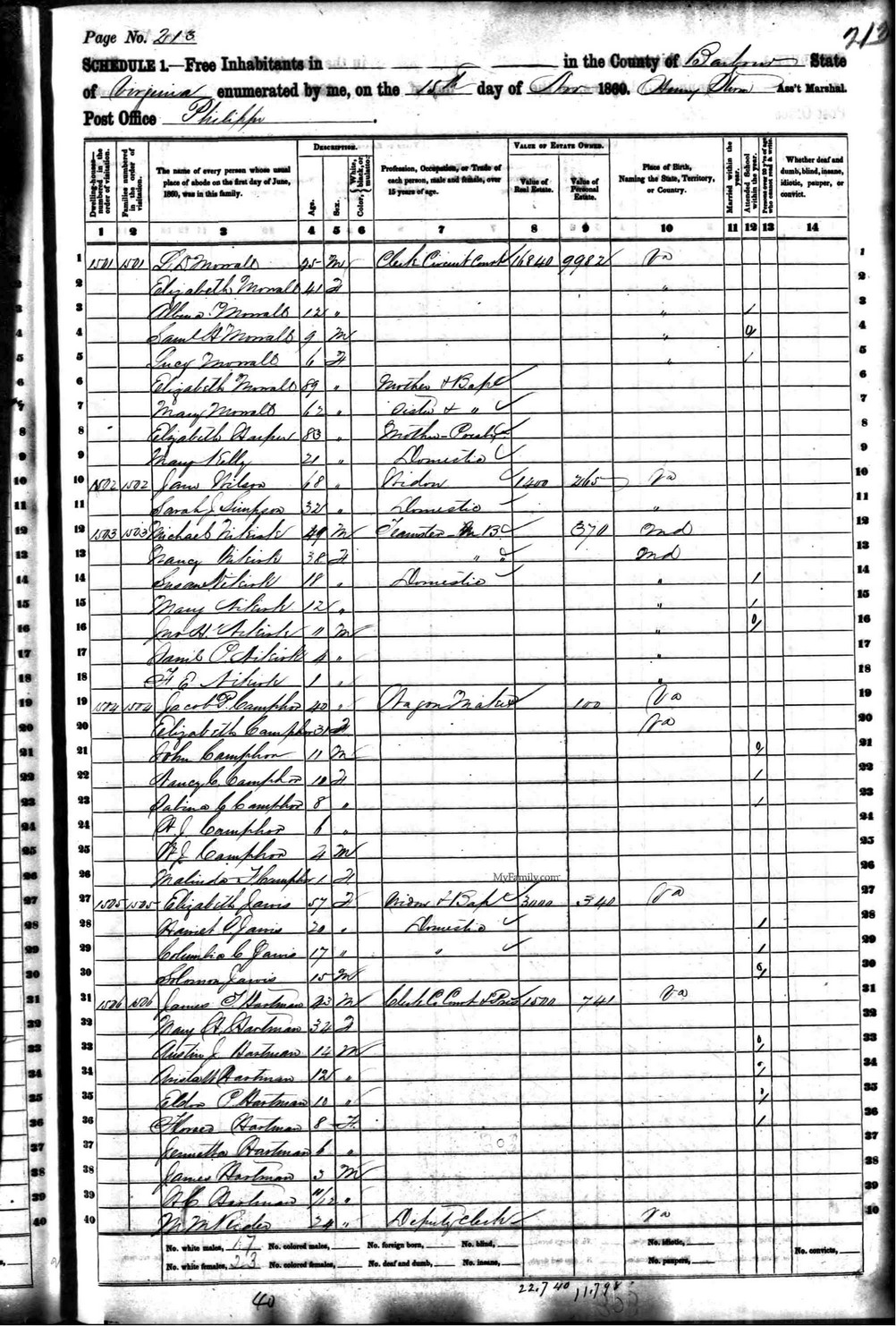 Date: November 15, 1860; Series: M653, Roll: 1334, Page: 213