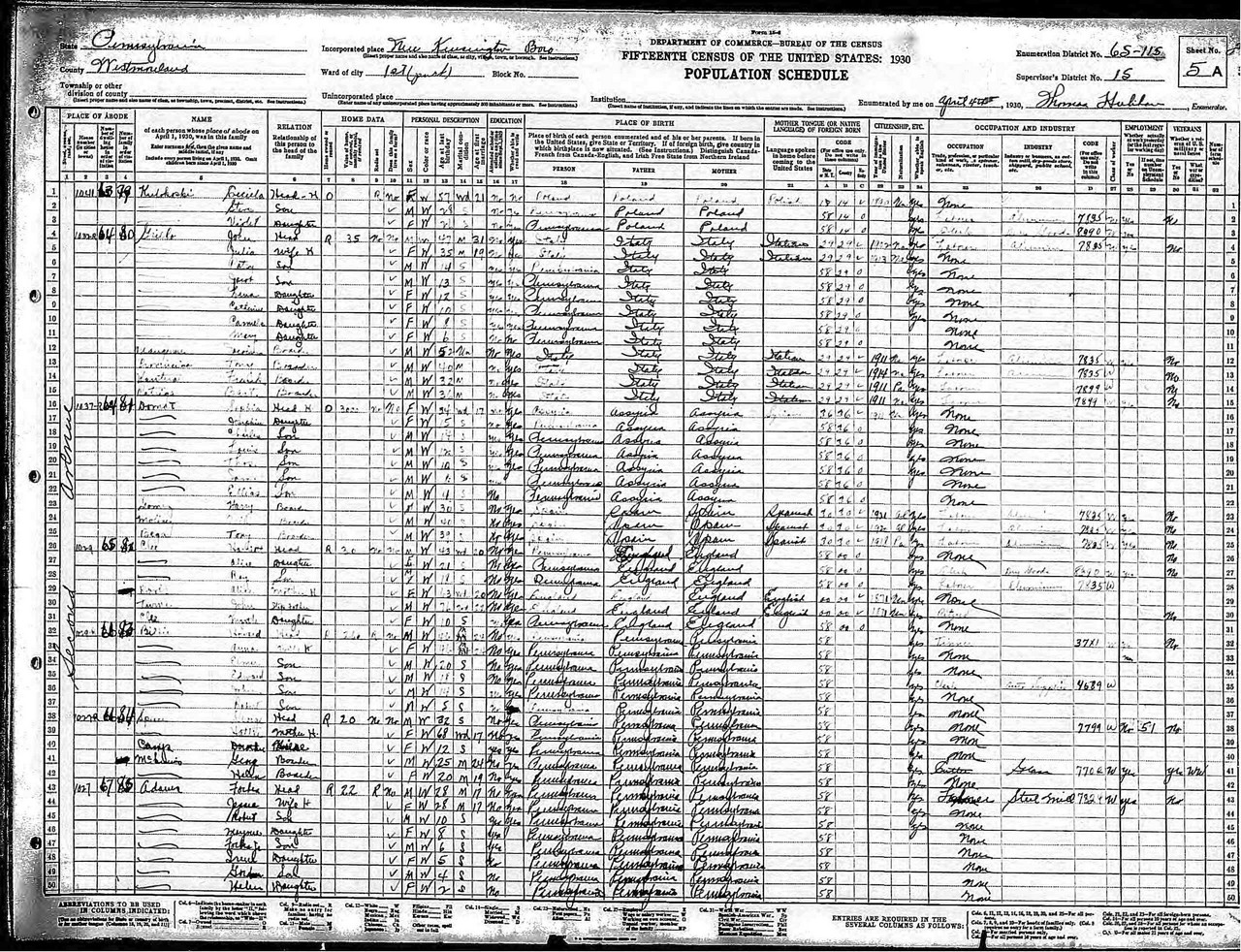 Date: April 4, 1930; Series: T626, Roll: 2158, ED: 115, Page: 5A