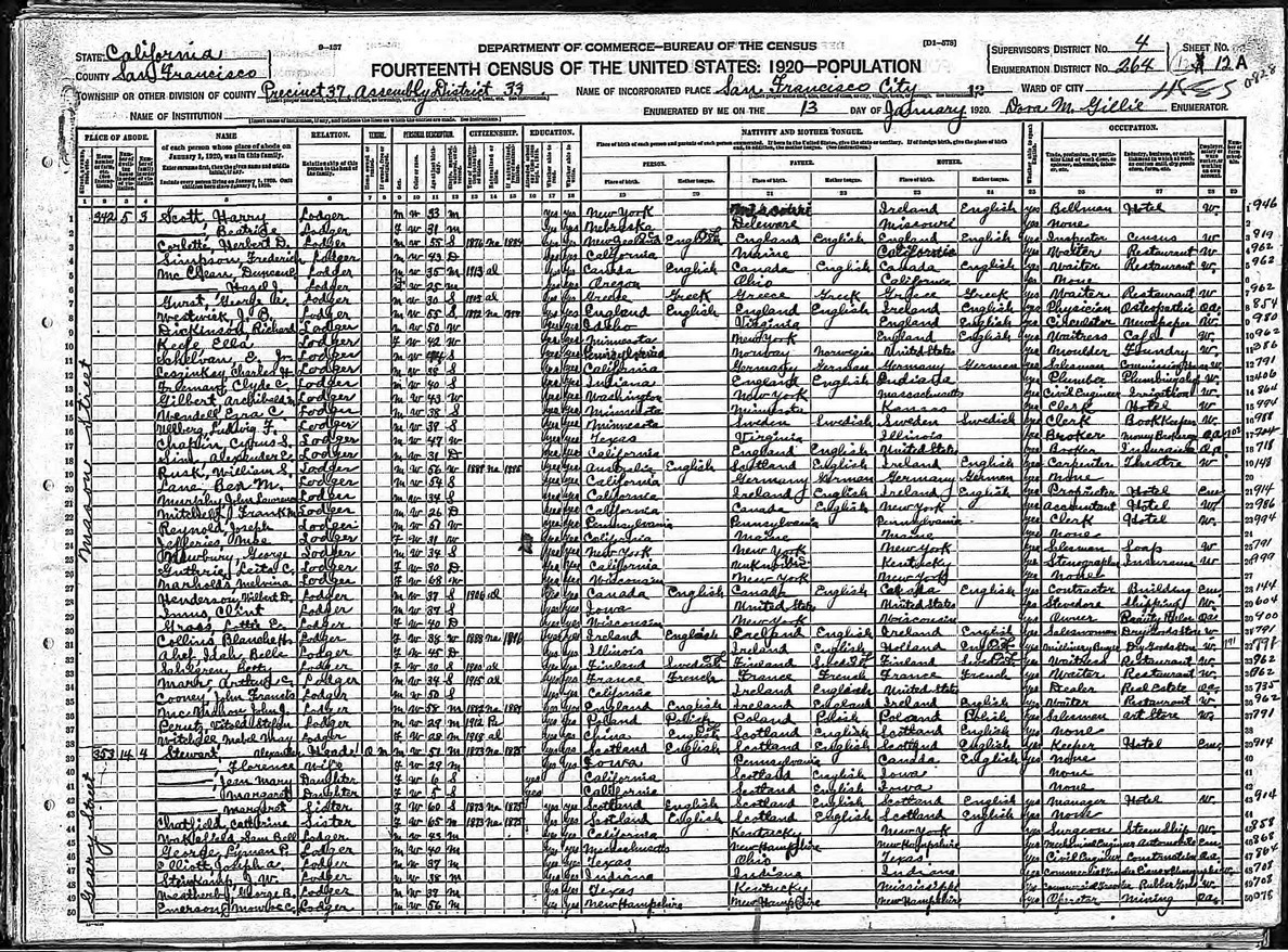Date: January 13, 1920; Series: T625, Roll: 140, ED: 264, Page: 12A