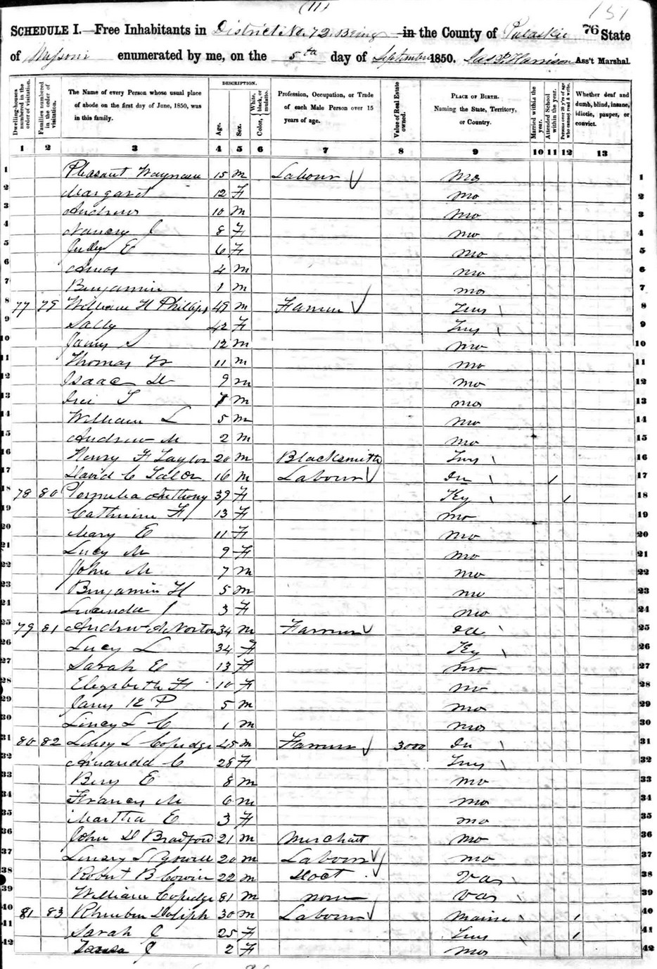 Date: September 5, 1850; Series: M432, Roll: 411, Page: 76