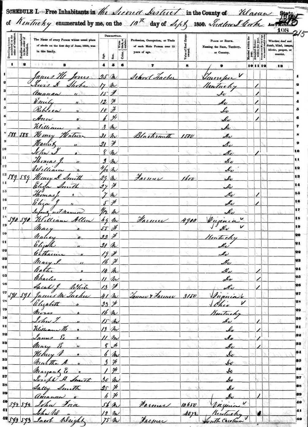 Date: September 10, 1850; Series: M432, Roll: 220, Page: 108