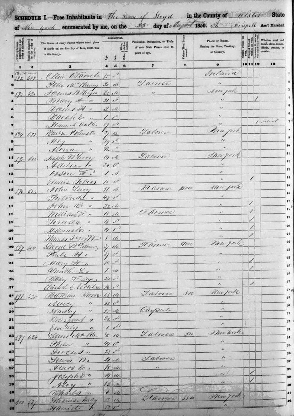| 41 | 627 | HALEY, Ithamar | 55 | M | Farmer | NY | ||||||