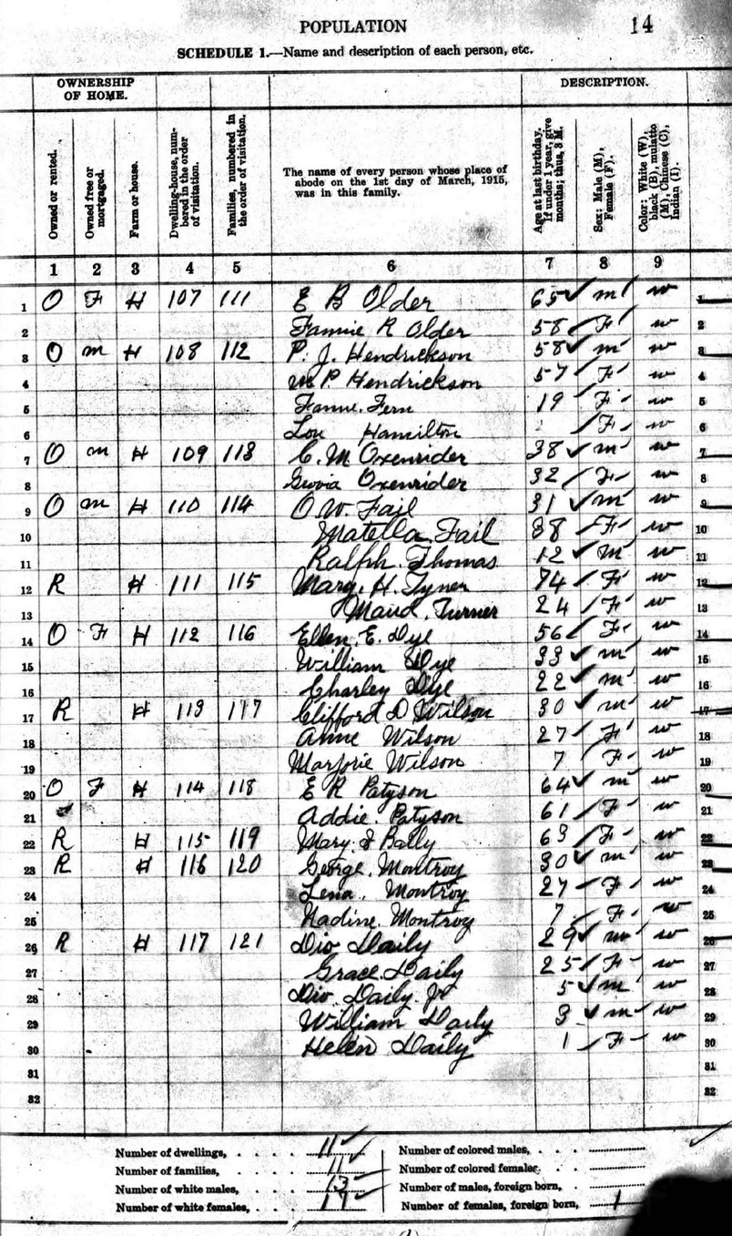 | Line | Family | Name | Age | Sex | Color | Birthplace | Moved From | Occupation |