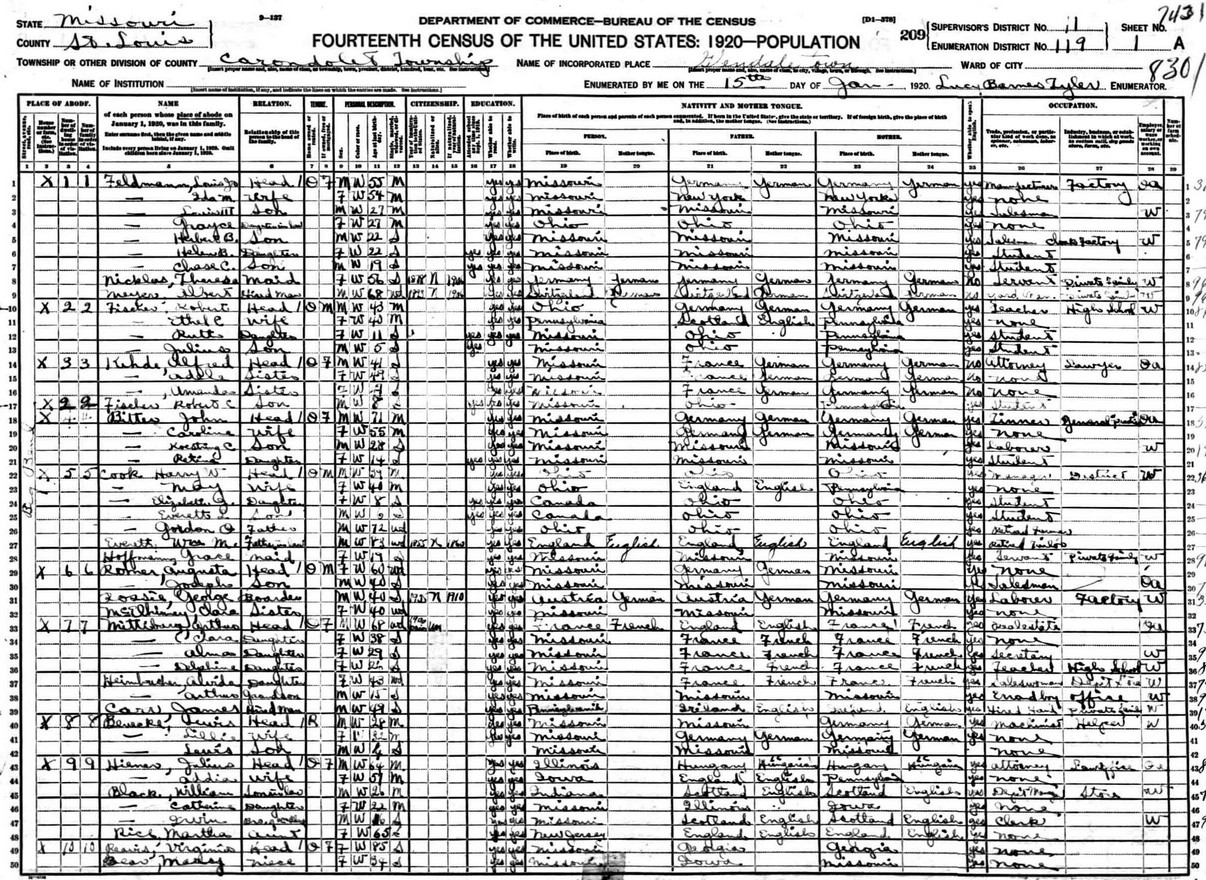 | Line | Family | Name | Relation | Sex | Color | Age | Status | Self | Father | Mother | Occupation | XR | XW |