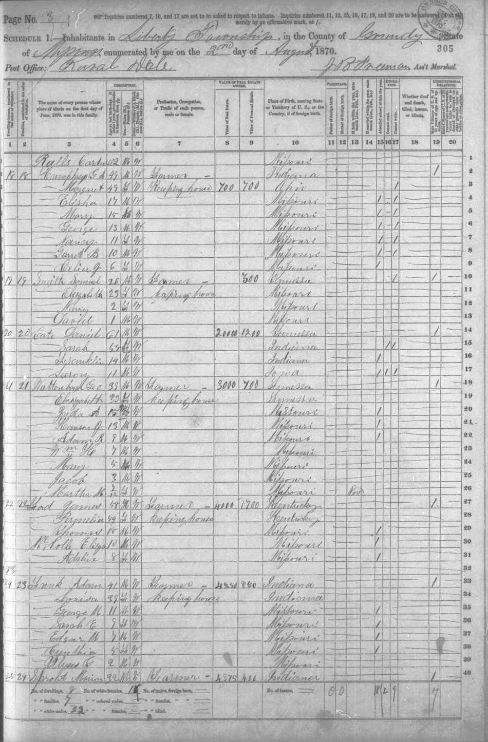 | SPROUT, Francis Marion | 32 | M |