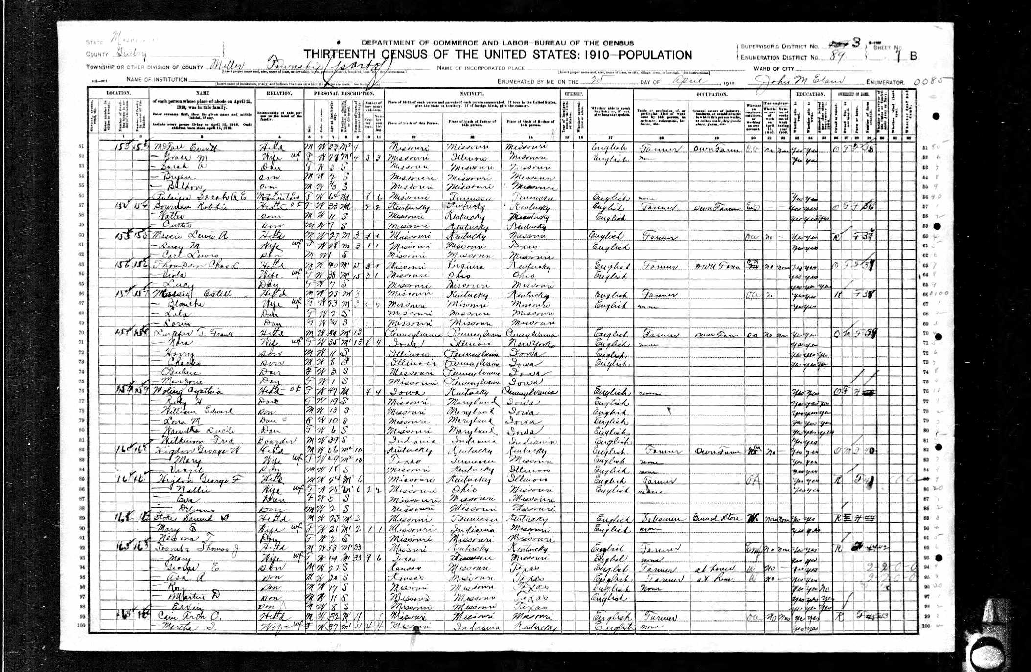 | 85 | 161 | HIGDON, George Franklin (Frank) | Head | M | W | 24 | M | 6 | MO | KY | IL | Farmer | ||||||