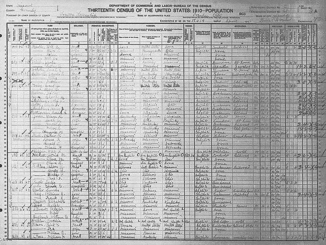 | Line | Family | Name | Relation | Sex | Color | Age | Status | Years | Total | Living | Self | Father | Mother | Occupation | XR | XW | B | D |