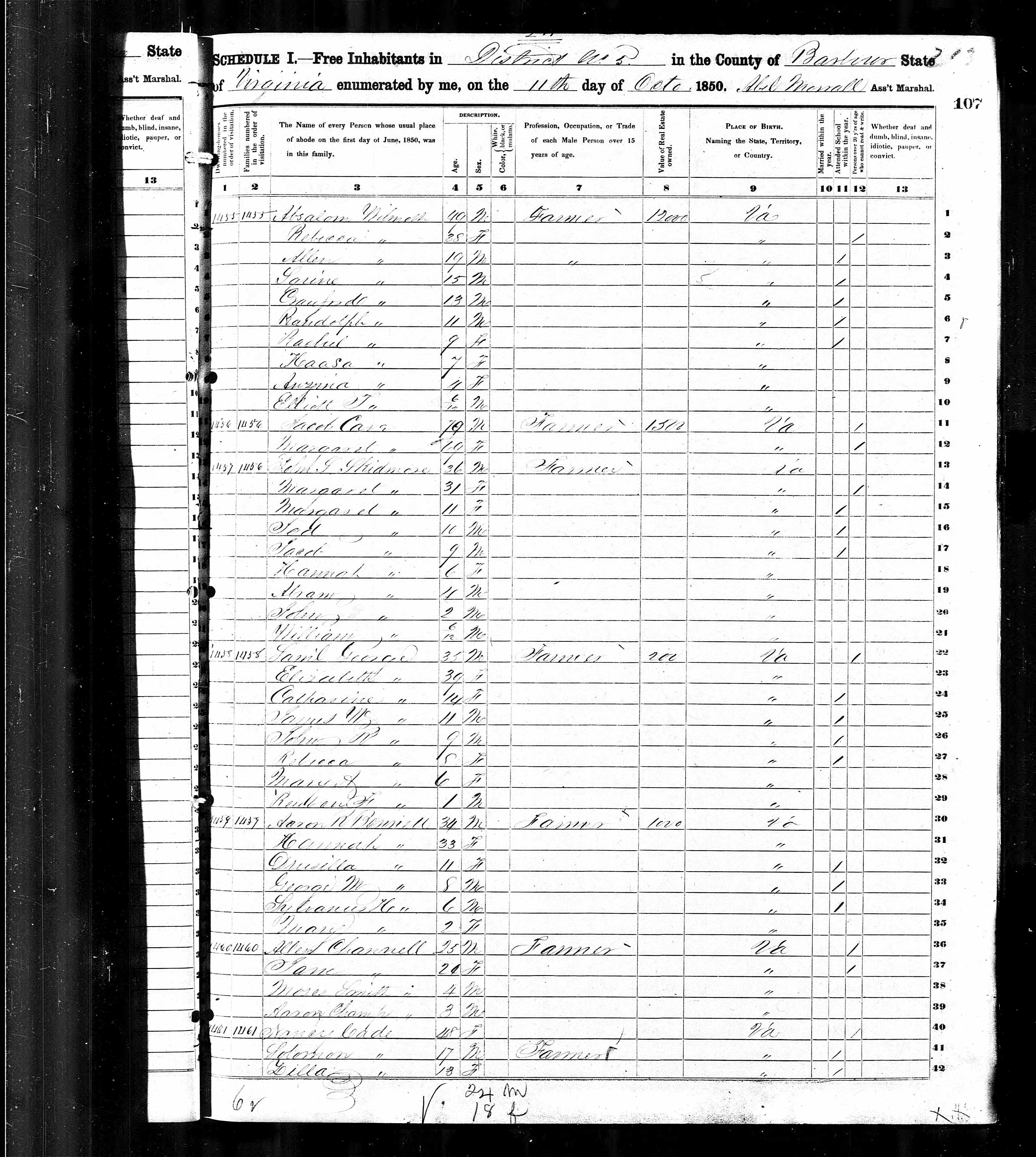 Date: October 11, 1850; Series: M432, Roll: 935, Page: 107A