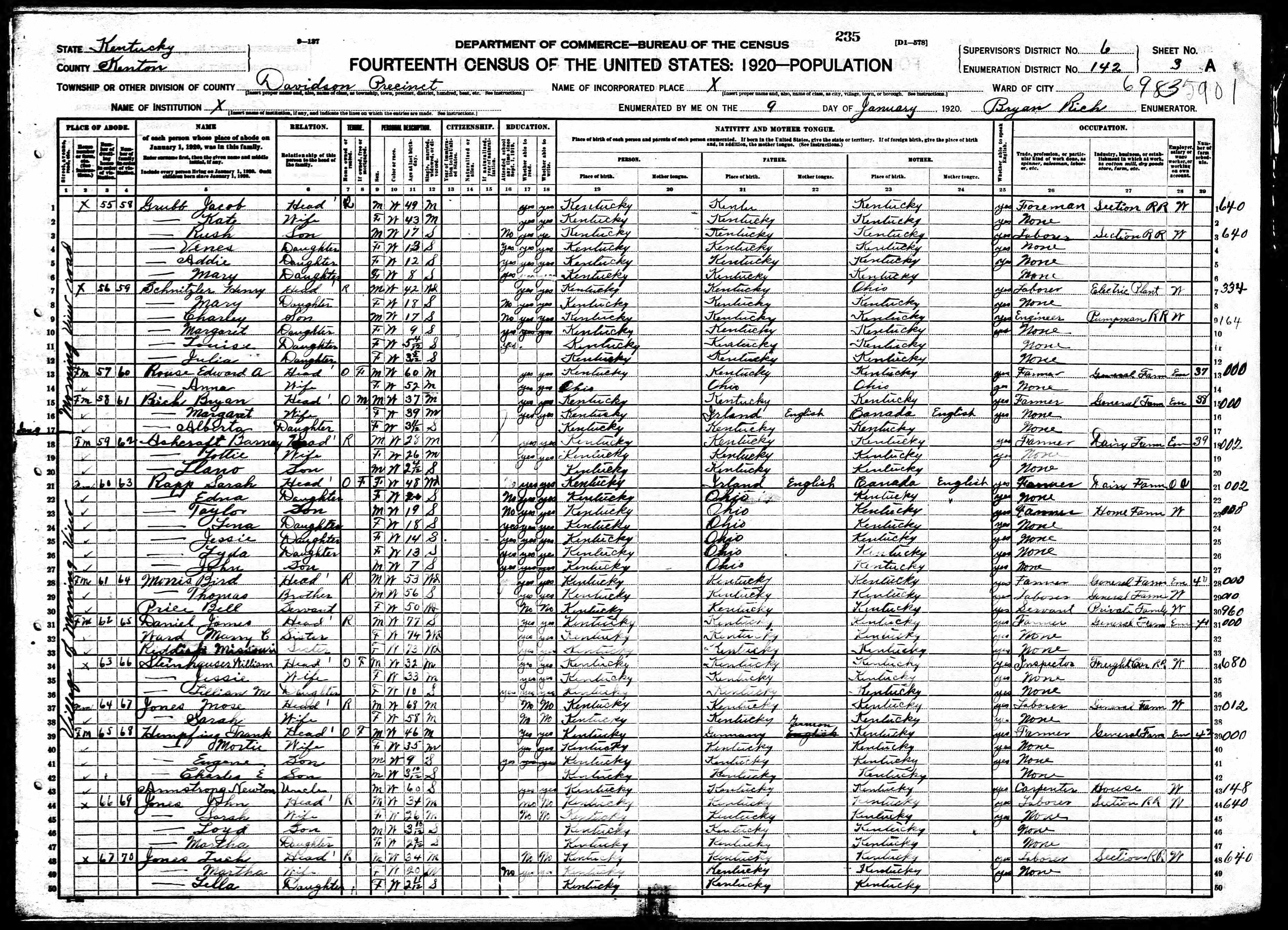 Date: January 1, 1920; Series: T625, Roll: 584, ED: 142, Page: 3A