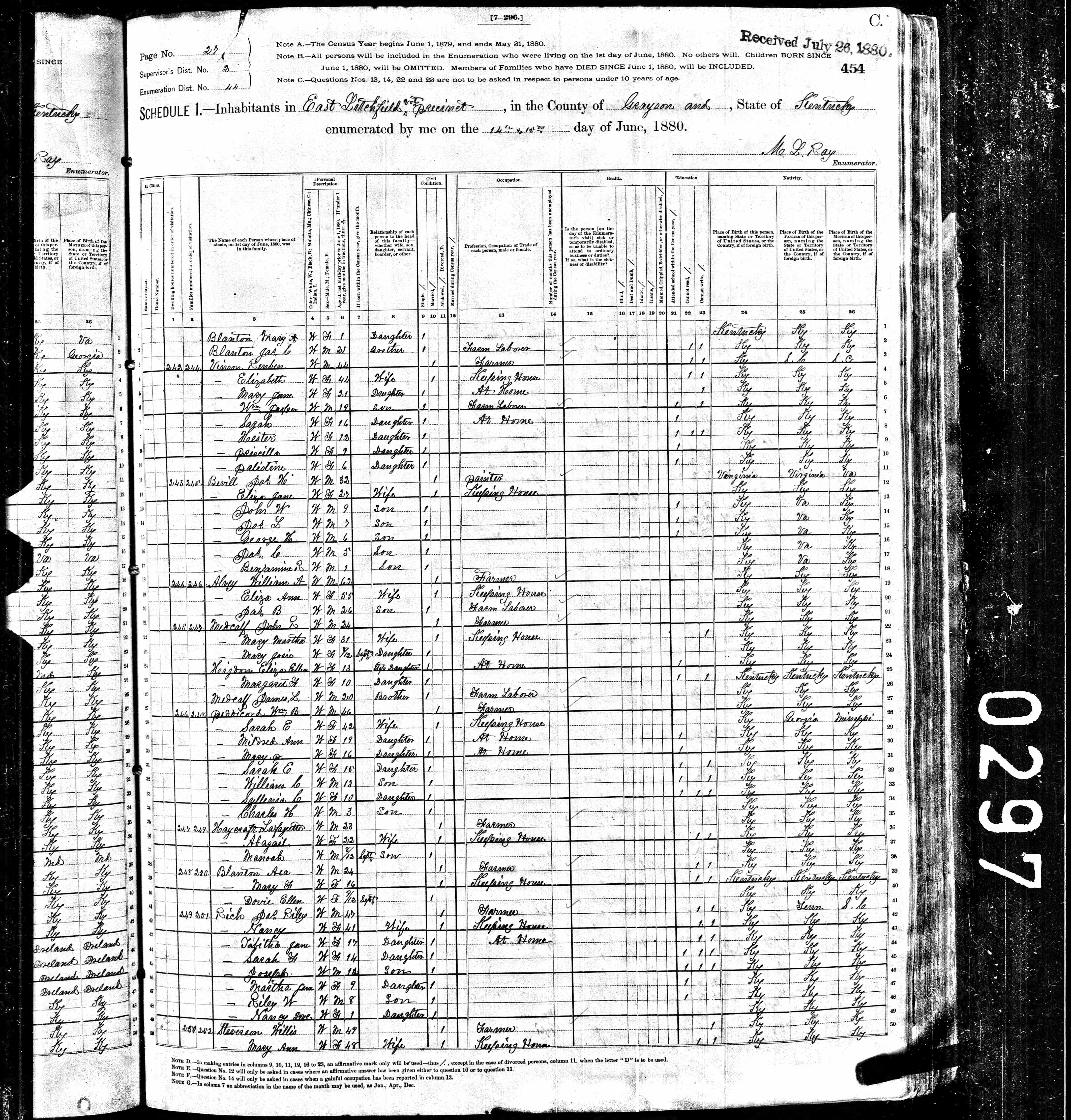 Date: June 14, 1880; Series: T9, Roll: 416, ED: 044, Page: 454C