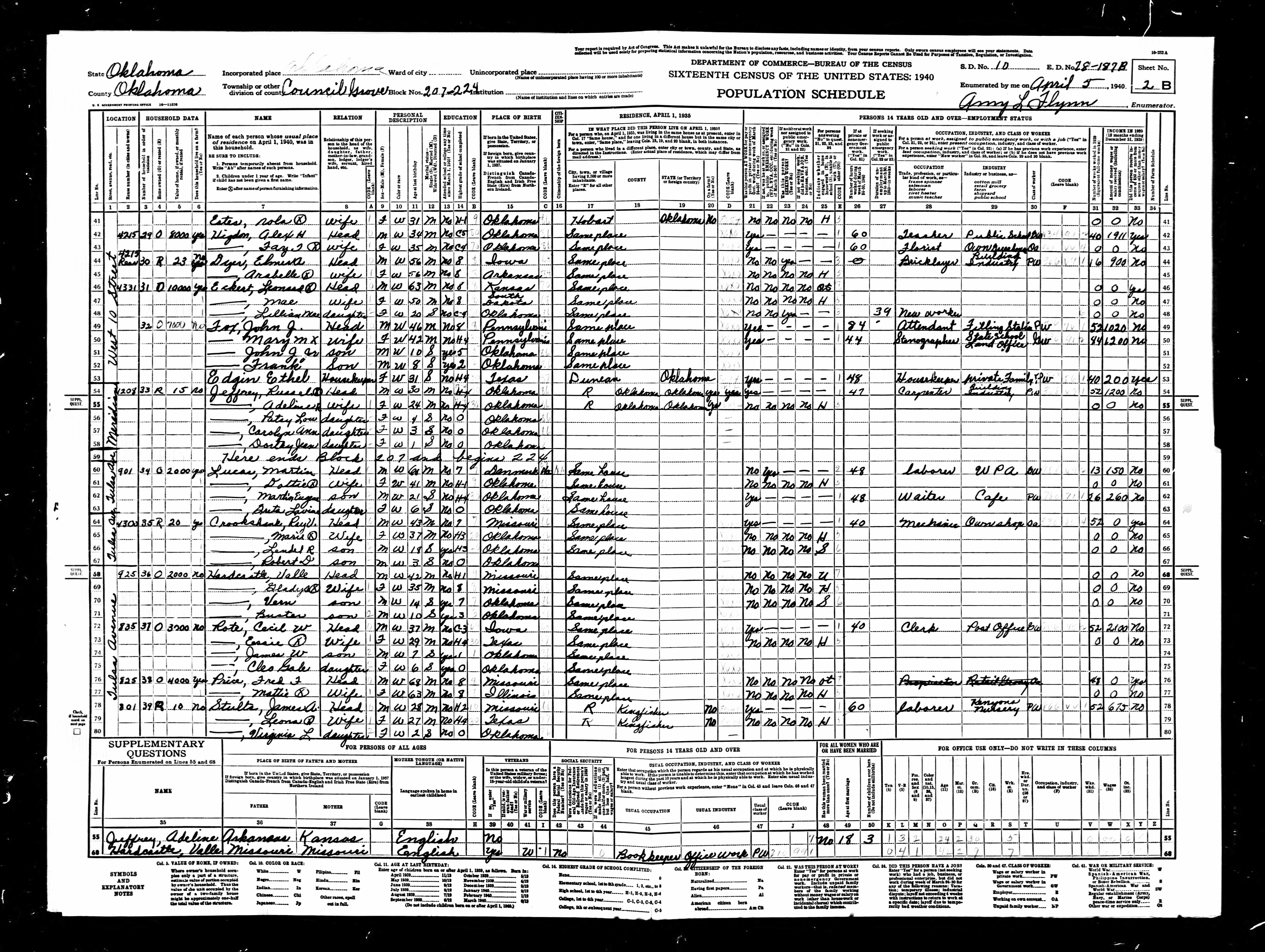 Date: April 5, 1940; Series: T627, Roll: 3346, ED: 78-187B, Page: 2B