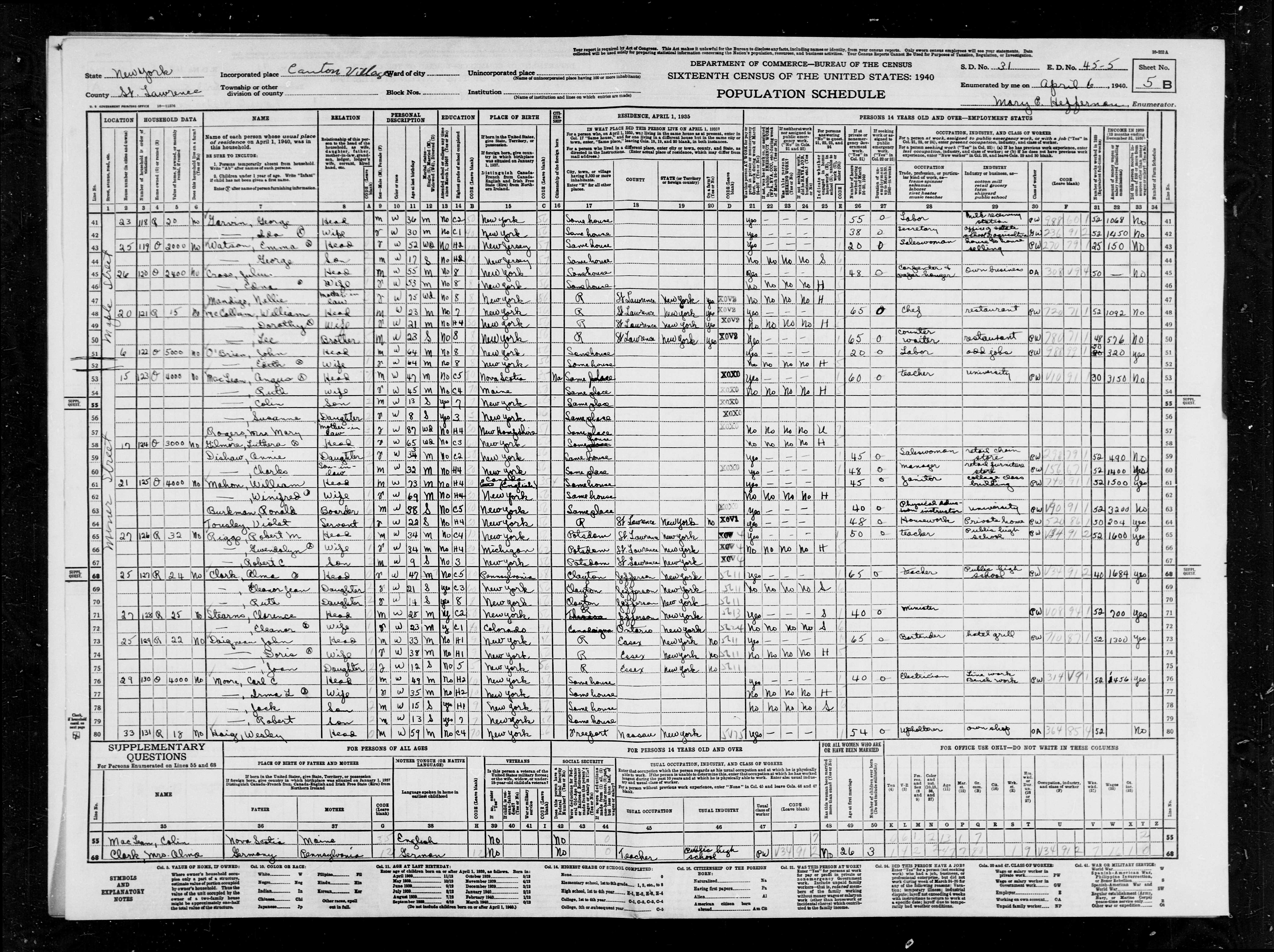 Date: April 6, 1940; Series: T627, ED: 45.-5, Page: 5B