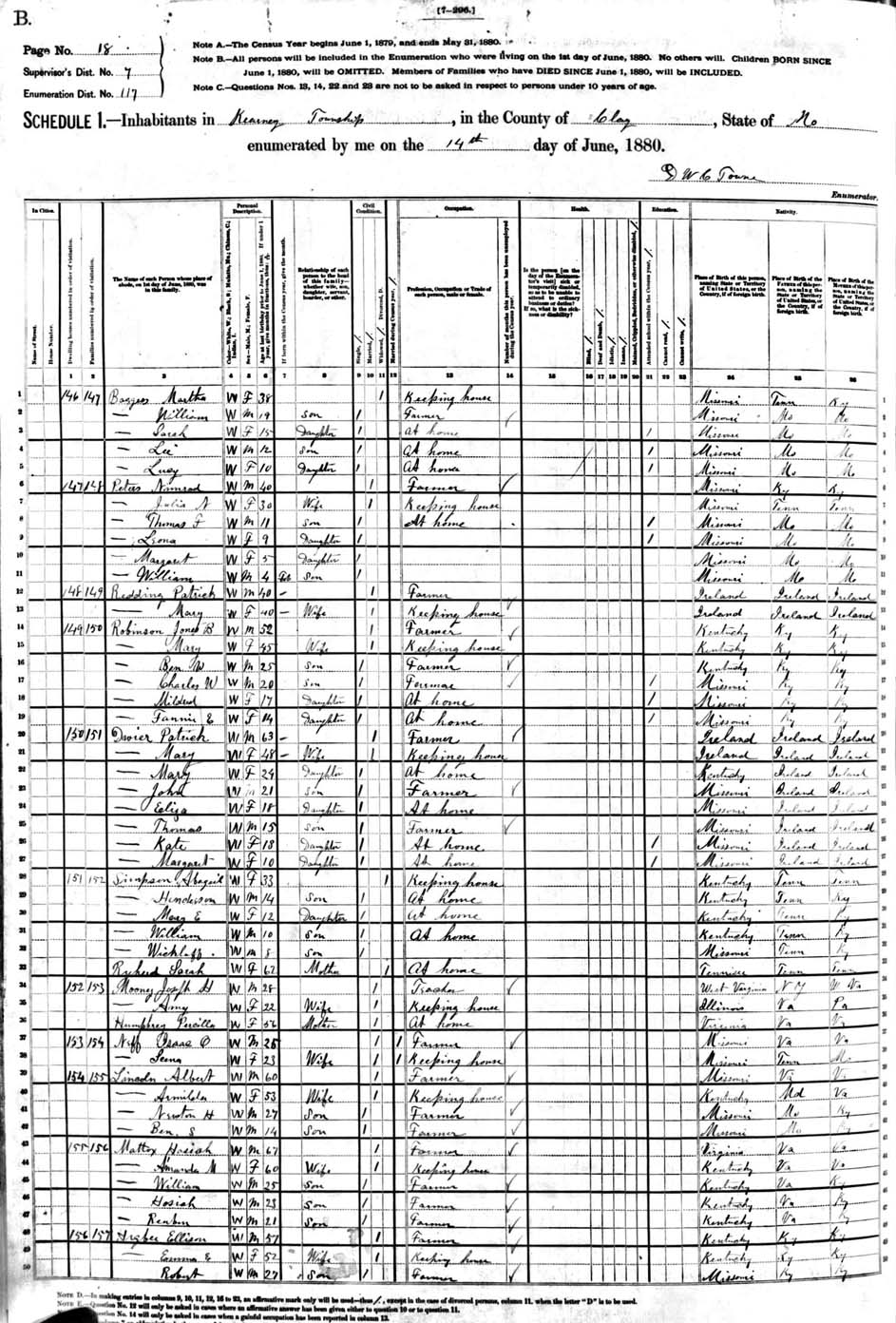 Date: June 14, 1880; Series: T9, Roll: 681, ED: 117, Page: 309B