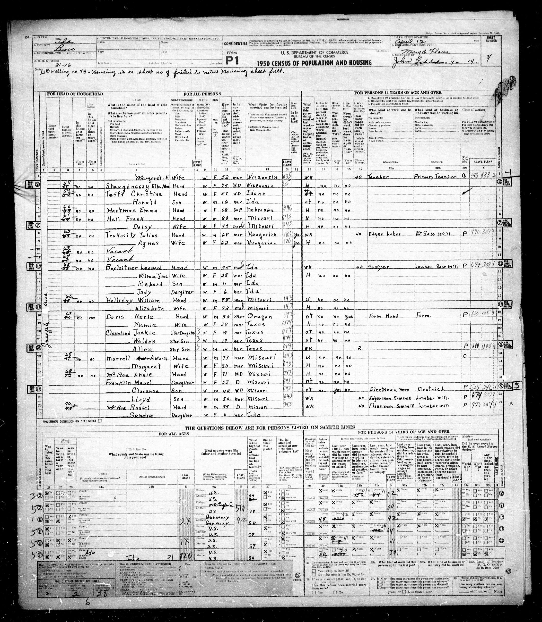 | Line | Family | Name | Relation | Race | Sex | Age | Status | Birthplace | Occupation | School | Vet | Vet War | Children |