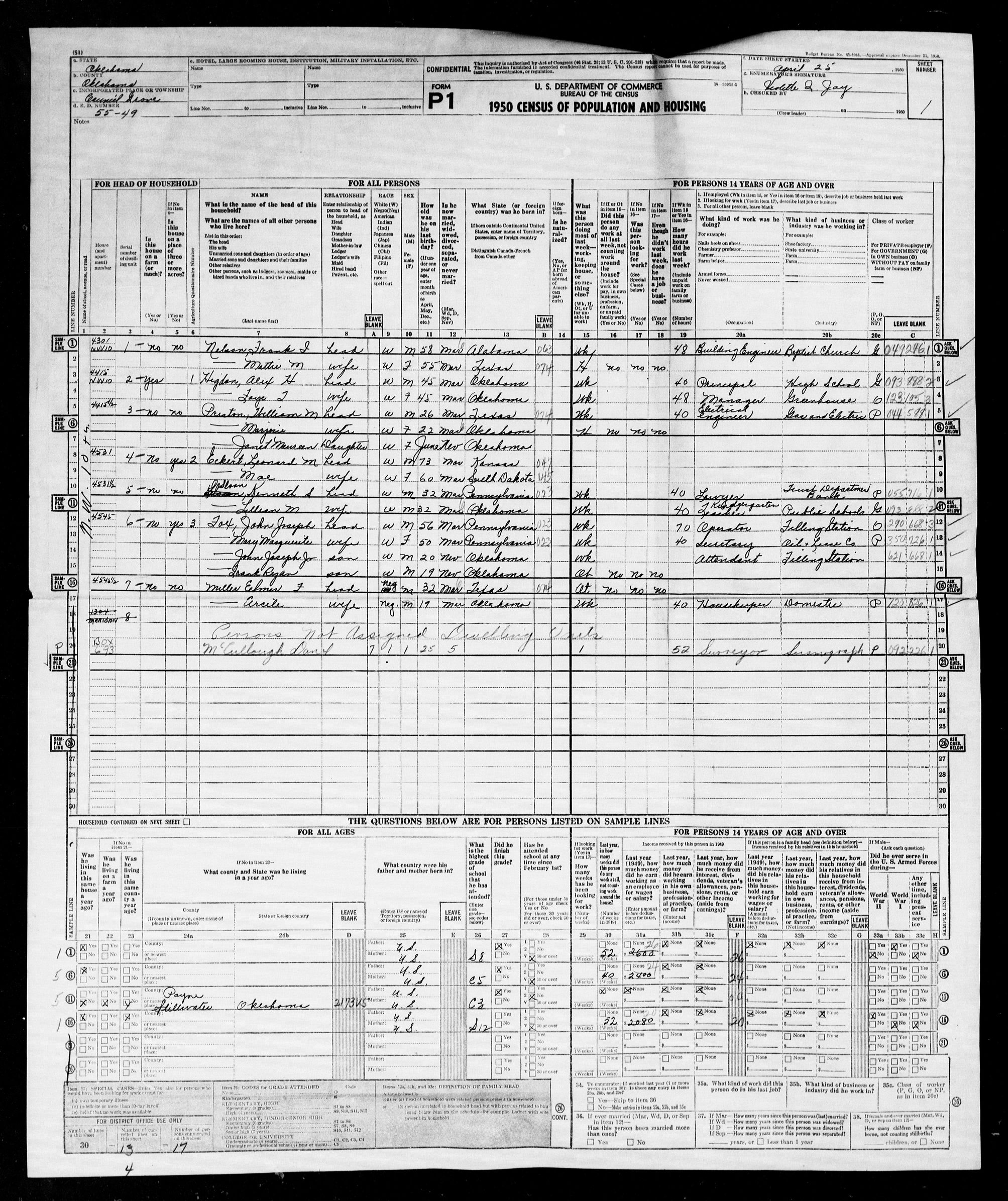 | Line | Family | Name | Relation | Race | Sex | Age | Status | Birthplace | Occupation | School | Vet | Vet War | Children |