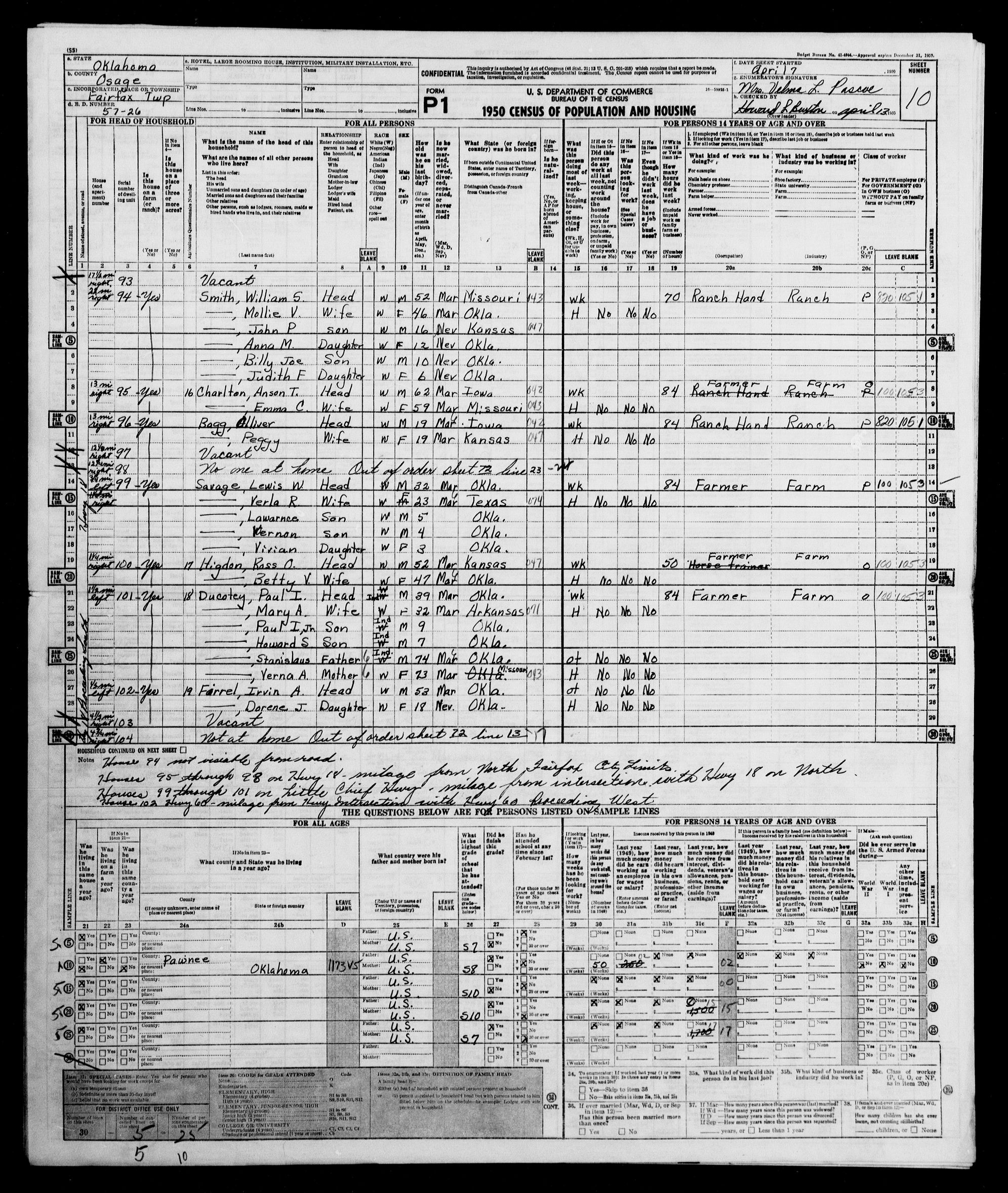| Line | Family | Name | Relation | Race | Sex | Age | Status | Birthplace | Occupation | School | Vet | Vet War | Children |