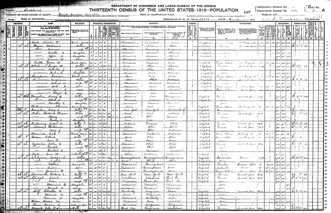 | 50 | MORRALL, John A | Head | M | W | 74 | M1 | 36 | WV | VA | MD | Farmer | |||||||