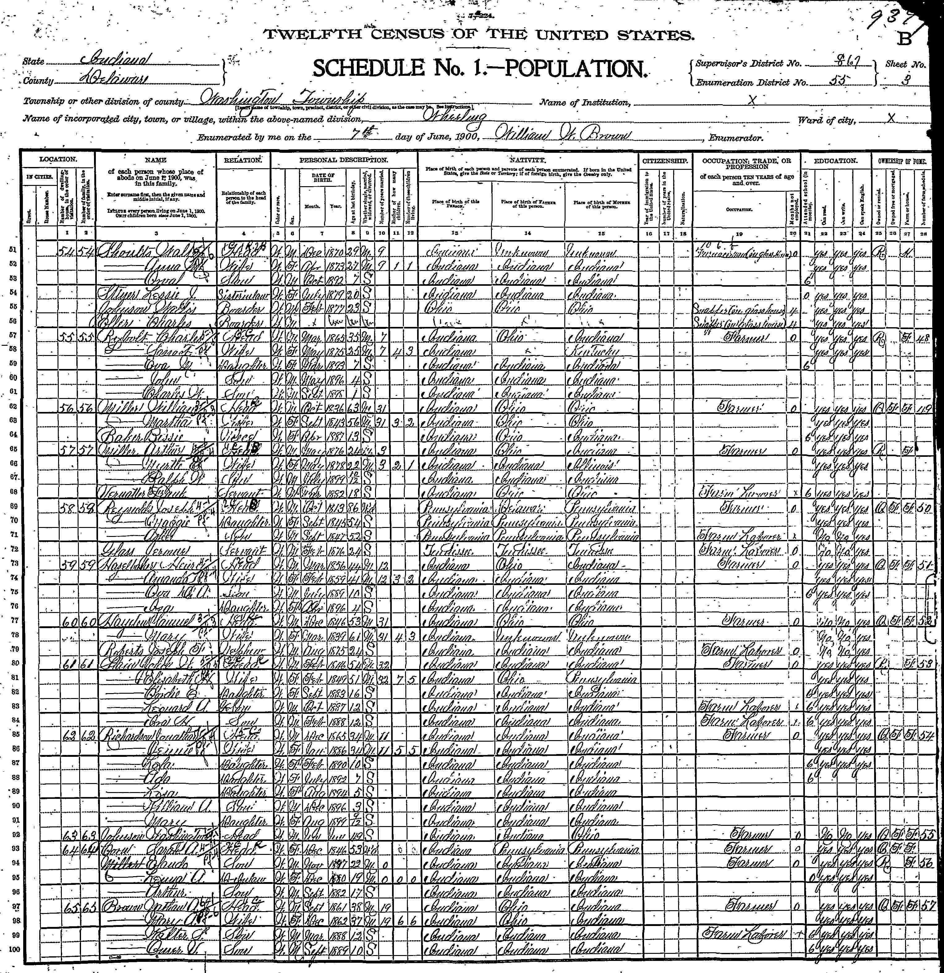 | 81 | 061 | HIGDON, Elizabeth Clementine [SLAIN] | Wife | W | F | Feb | 1849 | 51 | M | 32 | 7 | 5 | IN | OH | PA | |||