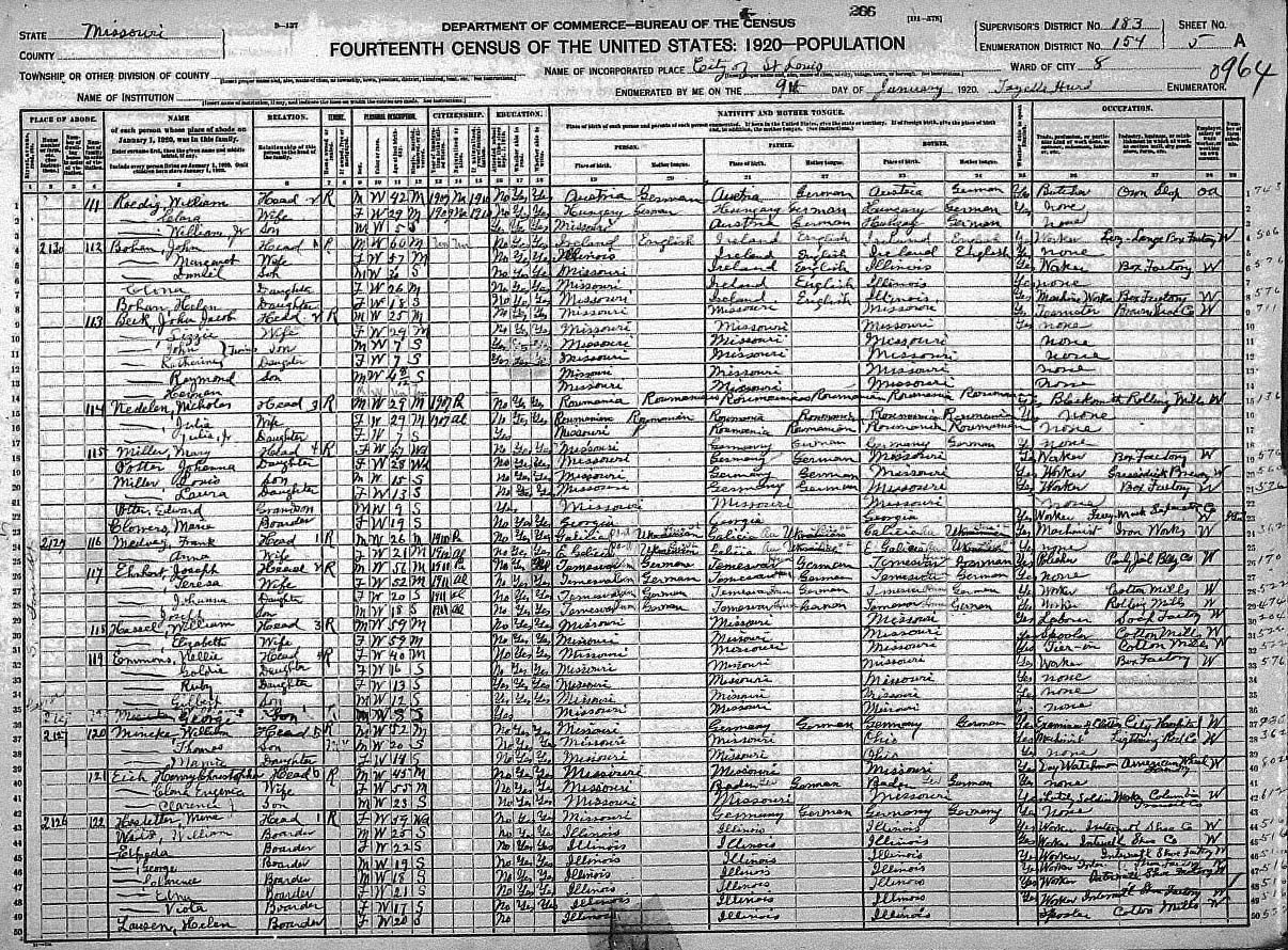 | Line | Family | Name | Relation | Sex | Color | Age | Status | Self | Father | Mother | Occupation | XR | XW |