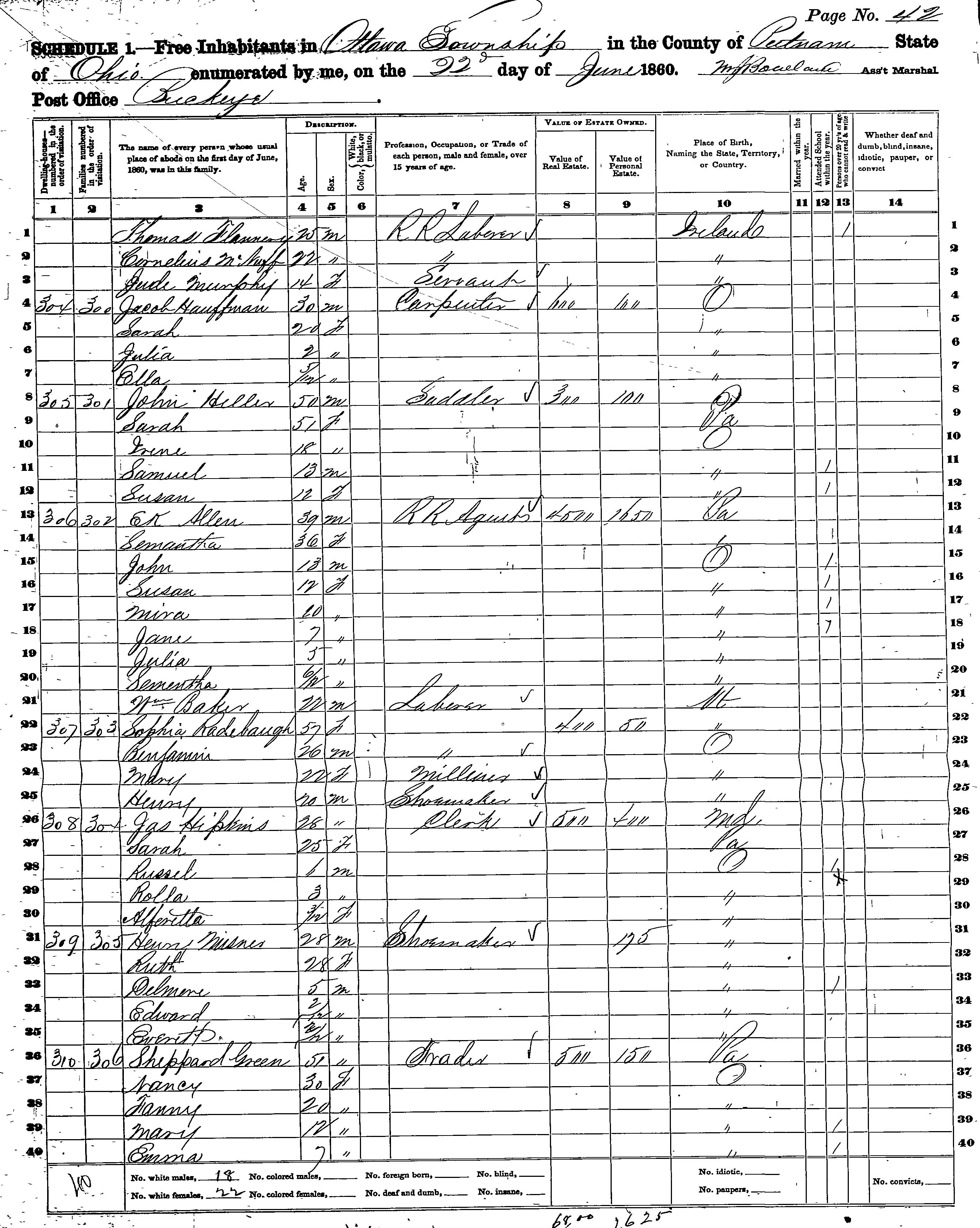 LineFamilyNameAgeSexColorOccupationBirthplaceXRXWHealth