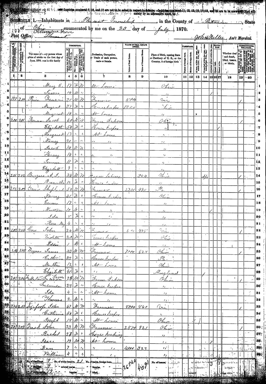 | Line | Family | Name | Age | Sex | Color | Occupation | Home Value | Personal Value | Birthplace | Father Foreign | Mother Foreign | XR | XW | B | D | I |