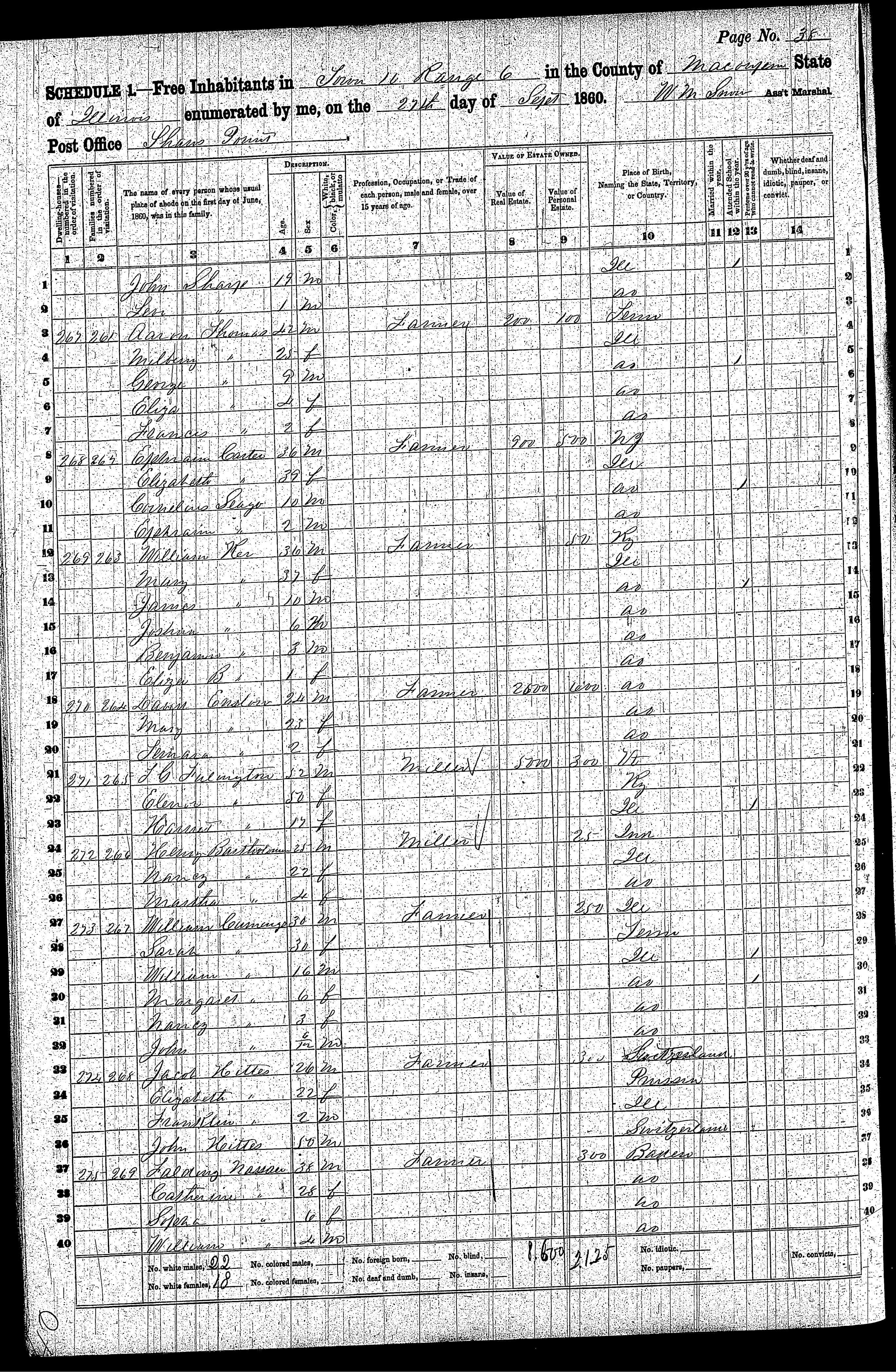 | 18 | 264 | ENSLOW, David Columbus | 24 | M | Farmer | IL | ||||