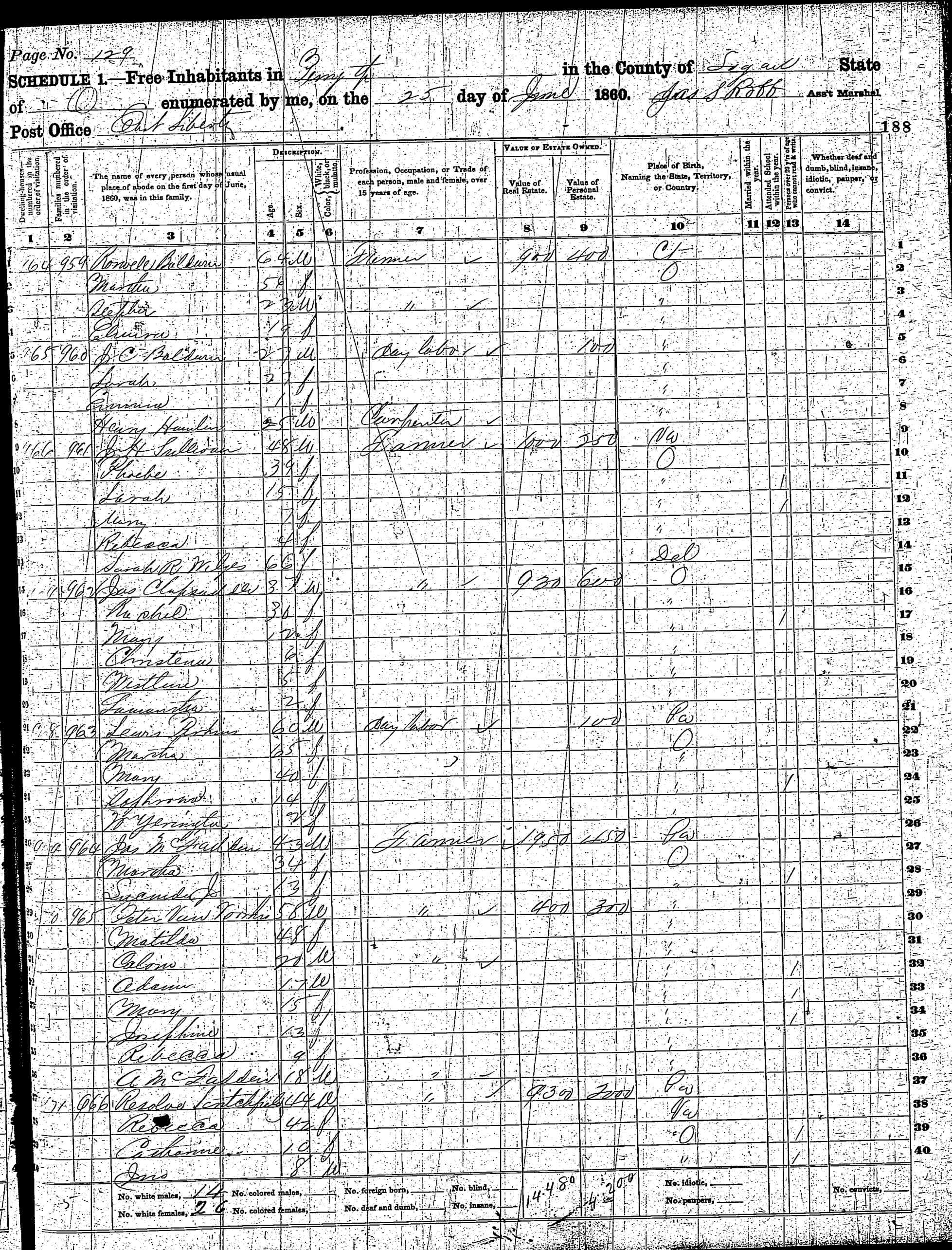 | Line | Family | Name | Age | Sex | Color | Occupation | Birthplace | XR | XW | Health |