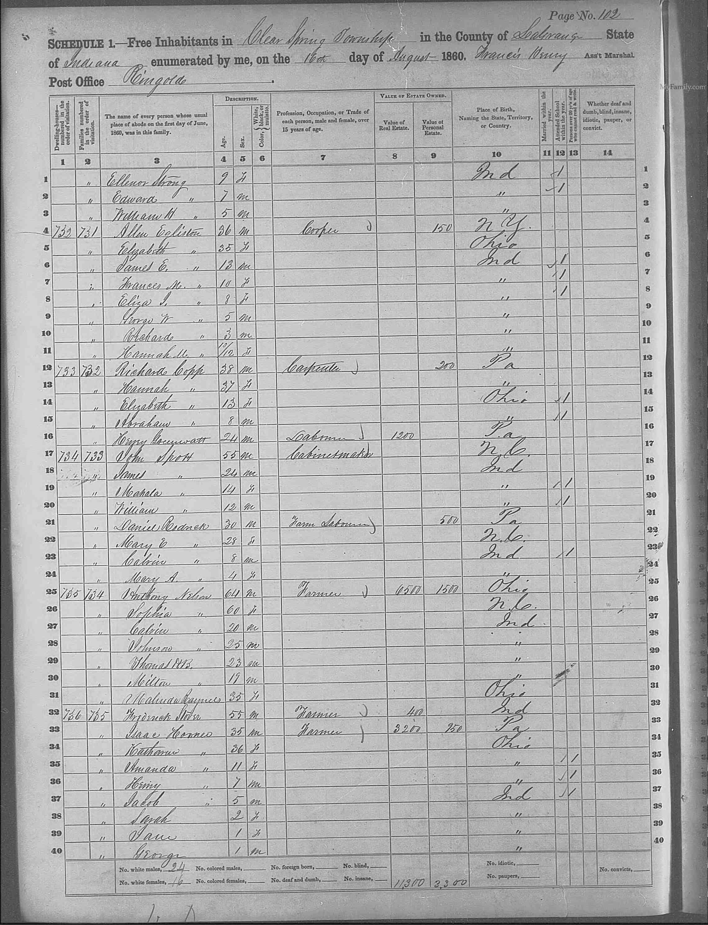 | 17 | 733 | SPROUT, John | 55 | M | W | Cabinetmaker | NC | |||