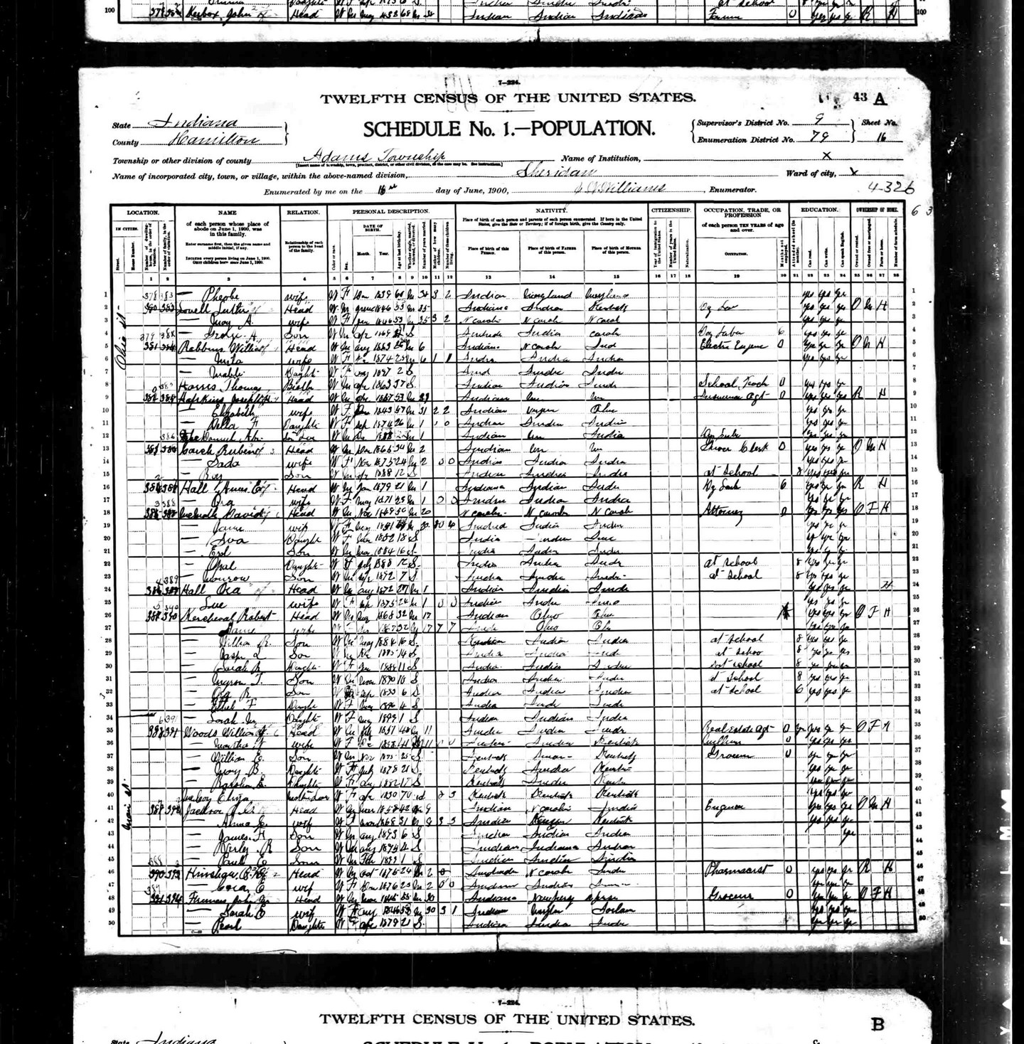 Date: June 16, 1900; Series: T623, Roll: 375, ED: 79, Page: 16A