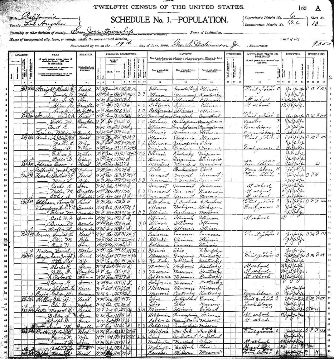 Date: June 19, 1900; Series: T623, Roll: 92, ED: 126, Page: 10A