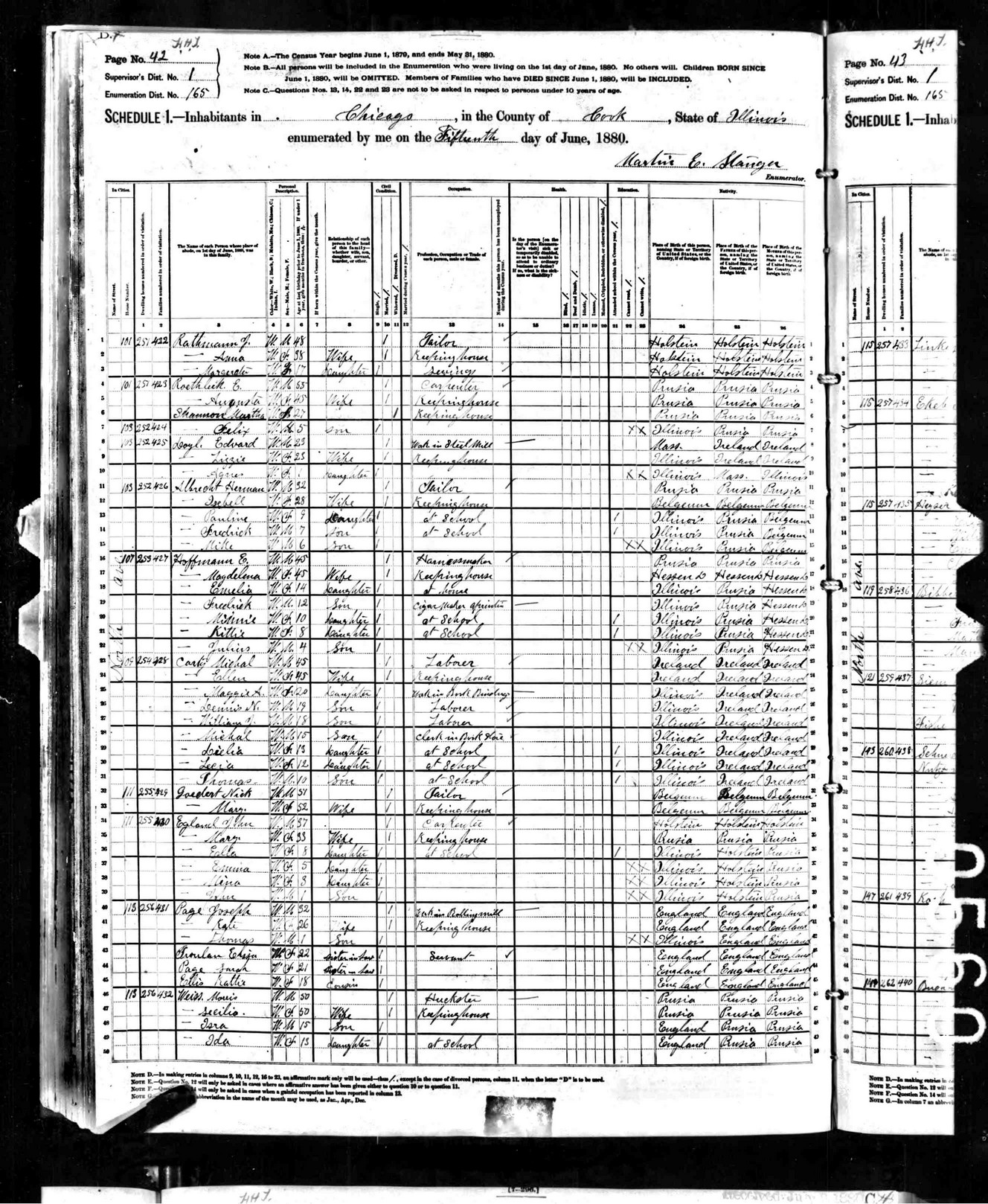 | 16 | 427 | HOFFMANN, Erdman 107 North Ave | W | M | 45 | Head | M | Harnessmaker | Prussia | Prussia | Prussia | |||||