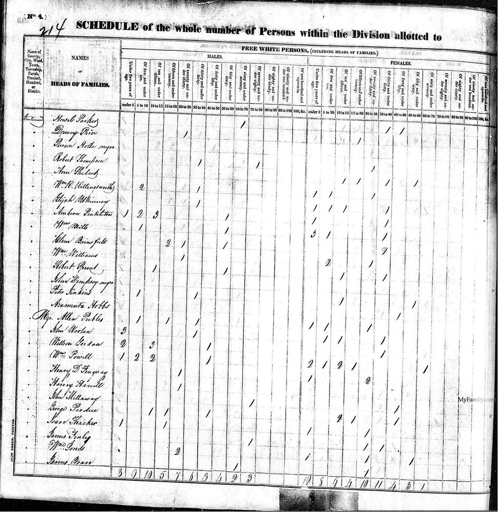 | Line | Name | Male 1815 - 1820 10 - 14 | Male 1771 - 1780 50 - 59 | Female 1815 - 1820 10 - 14 | Female 1791 - 1800 30 - 39 |