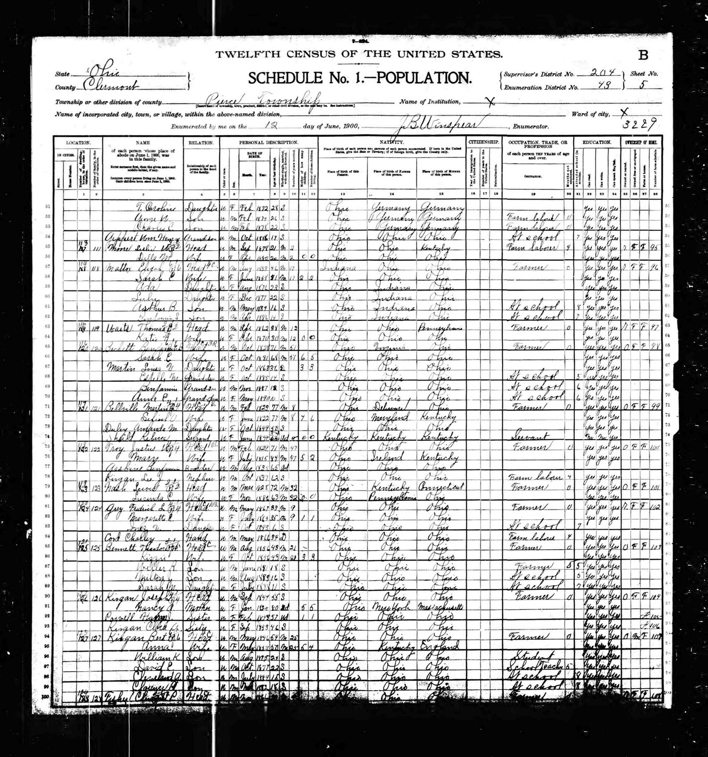 Date: June 12, 1900; Series: T623, Roll: 1247, ED: 43, Page: 5B