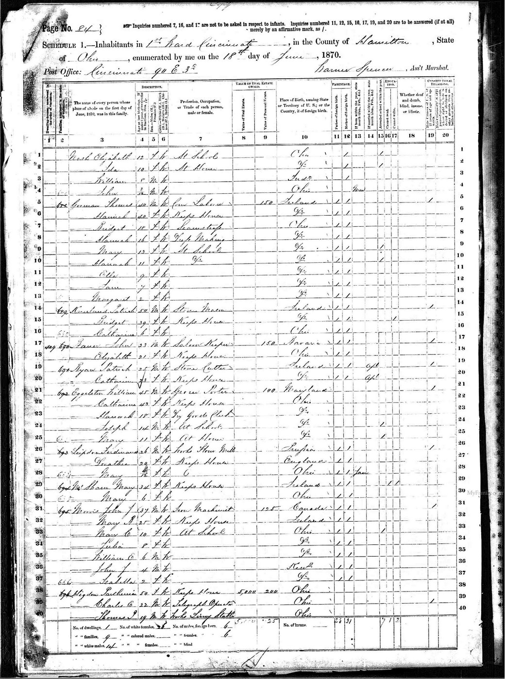 Date: June 18, 1870; Series: M593, Roll: 1209, Page: 43