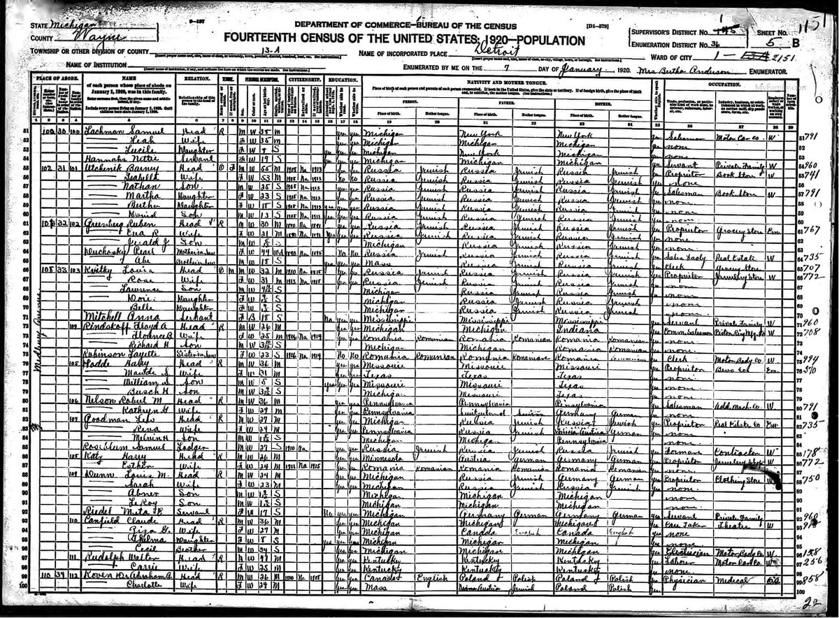 Date: January 7, 1920; Series: T625, Roll: 803, ED: 36, Page: 5B