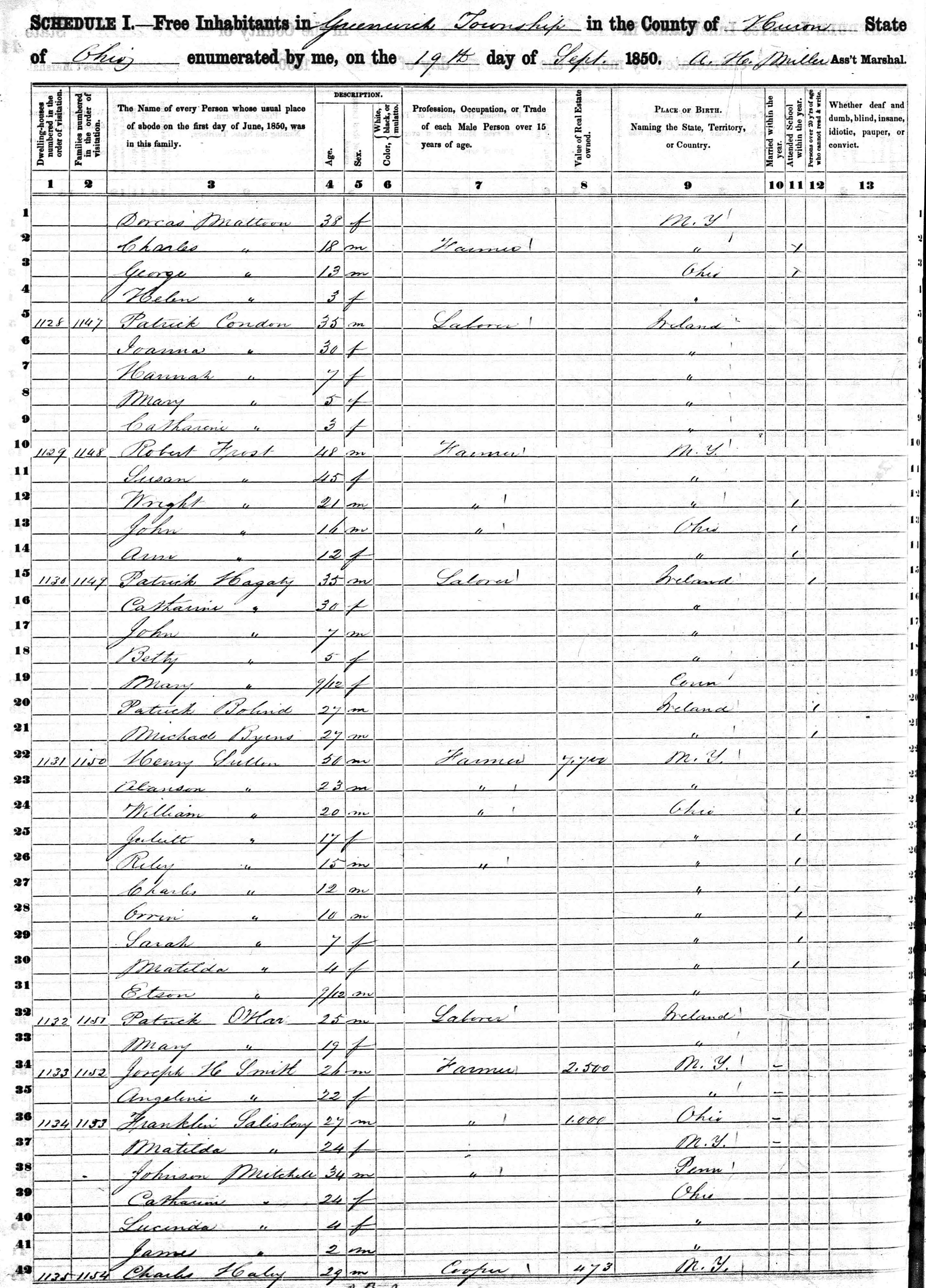 | 42 | 1154 | HALEY, Charles E | 29 | M | Cooper | NY |