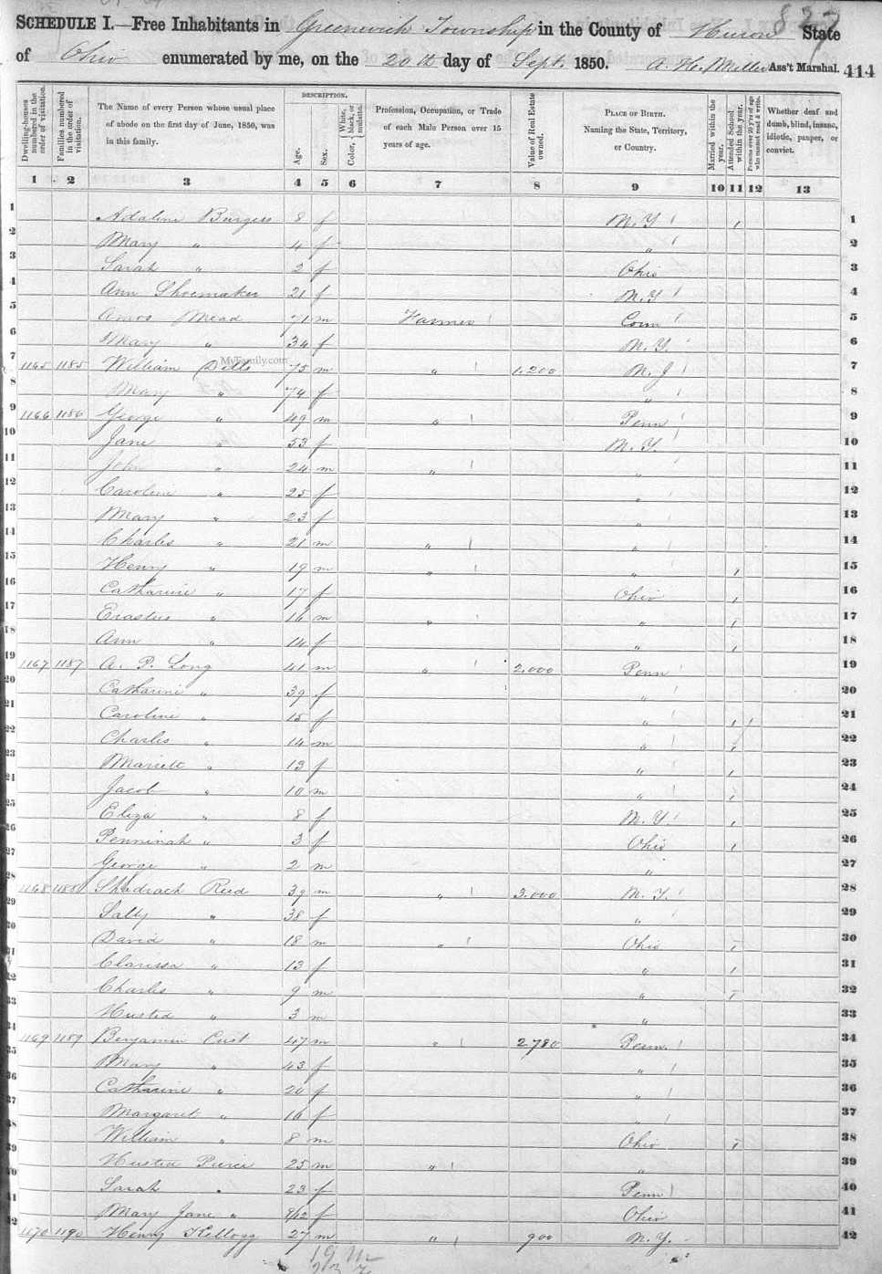 Date: June 1, 1850; Series: M432, Roll: 697, Page: 414A