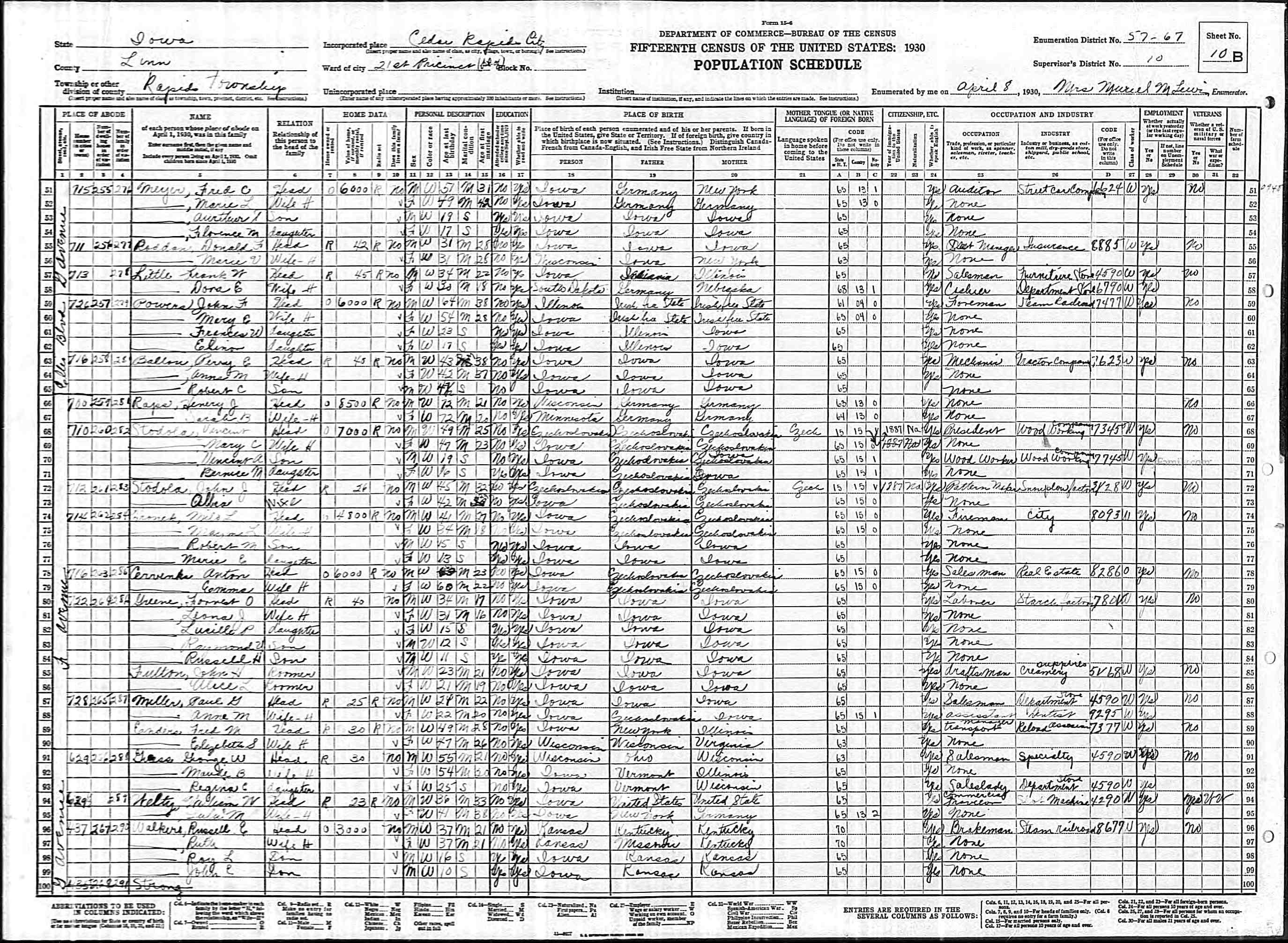 Date: April 8, 1930; Series: T626, Roll: 665, ED: 67, Page: 10B