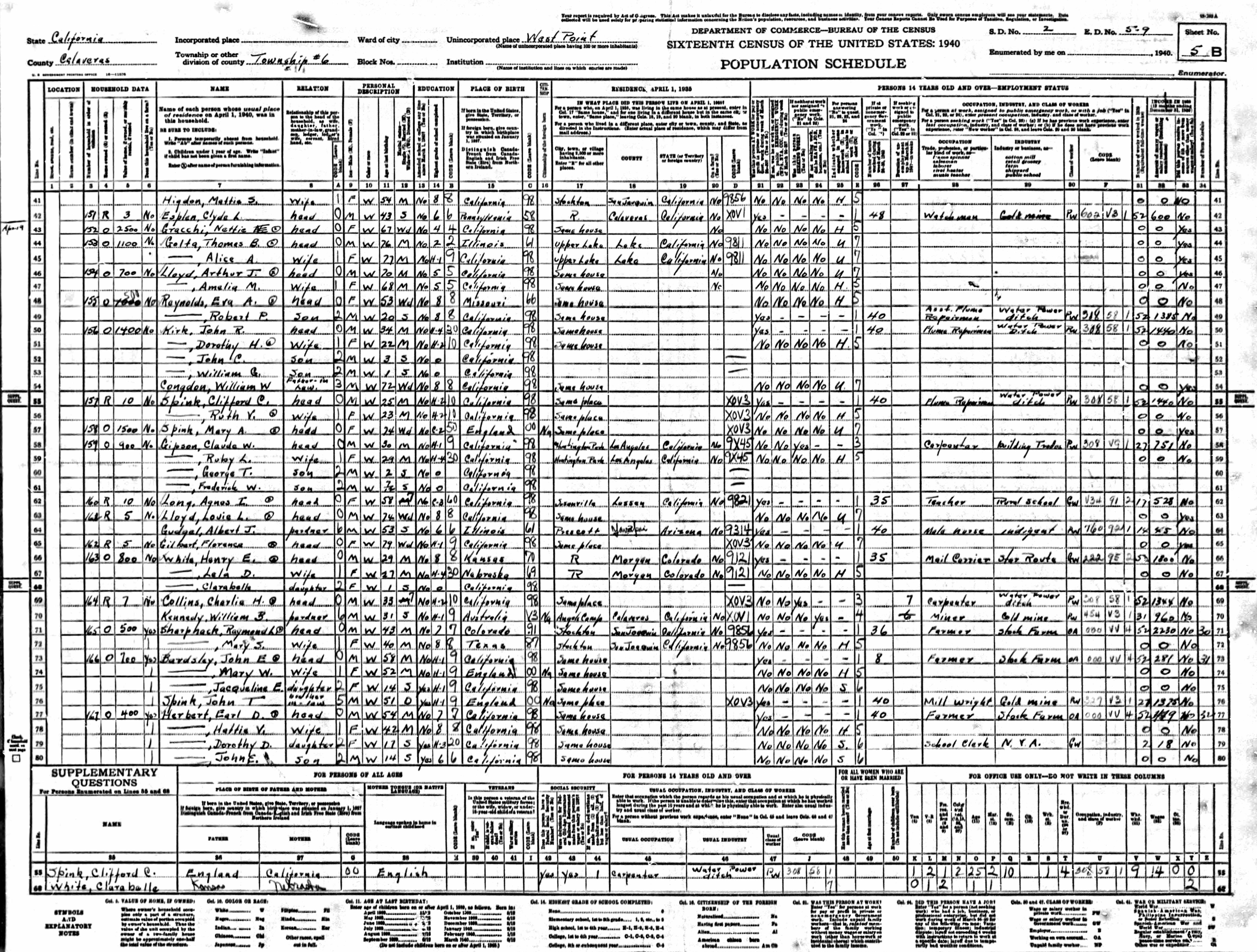 | 41 | 150 | SAWYER, Mattie S [HIGDON] | Wife | F | W | 54 | M | 8 | CA | ||||