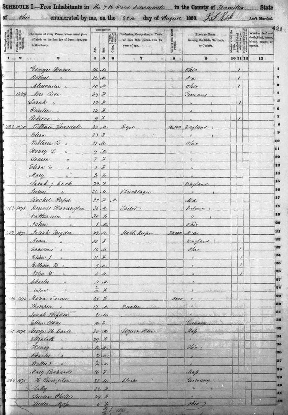 Date: August 28, 1850; Series: M432, Roll: 689, ED: 7, Page: 421