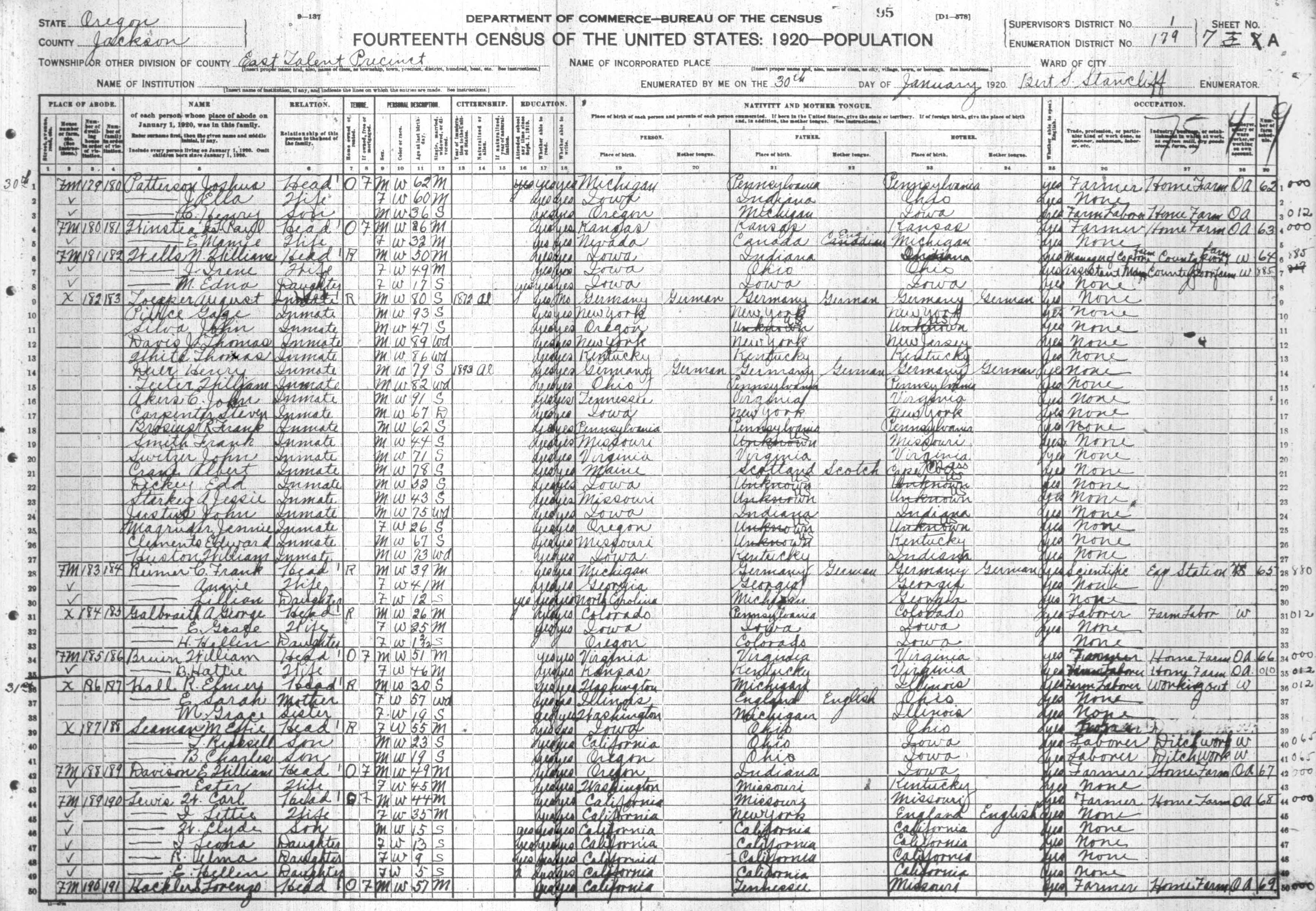 Date: January 30, 1920; Series: T625, ED: 179, Page: 7A