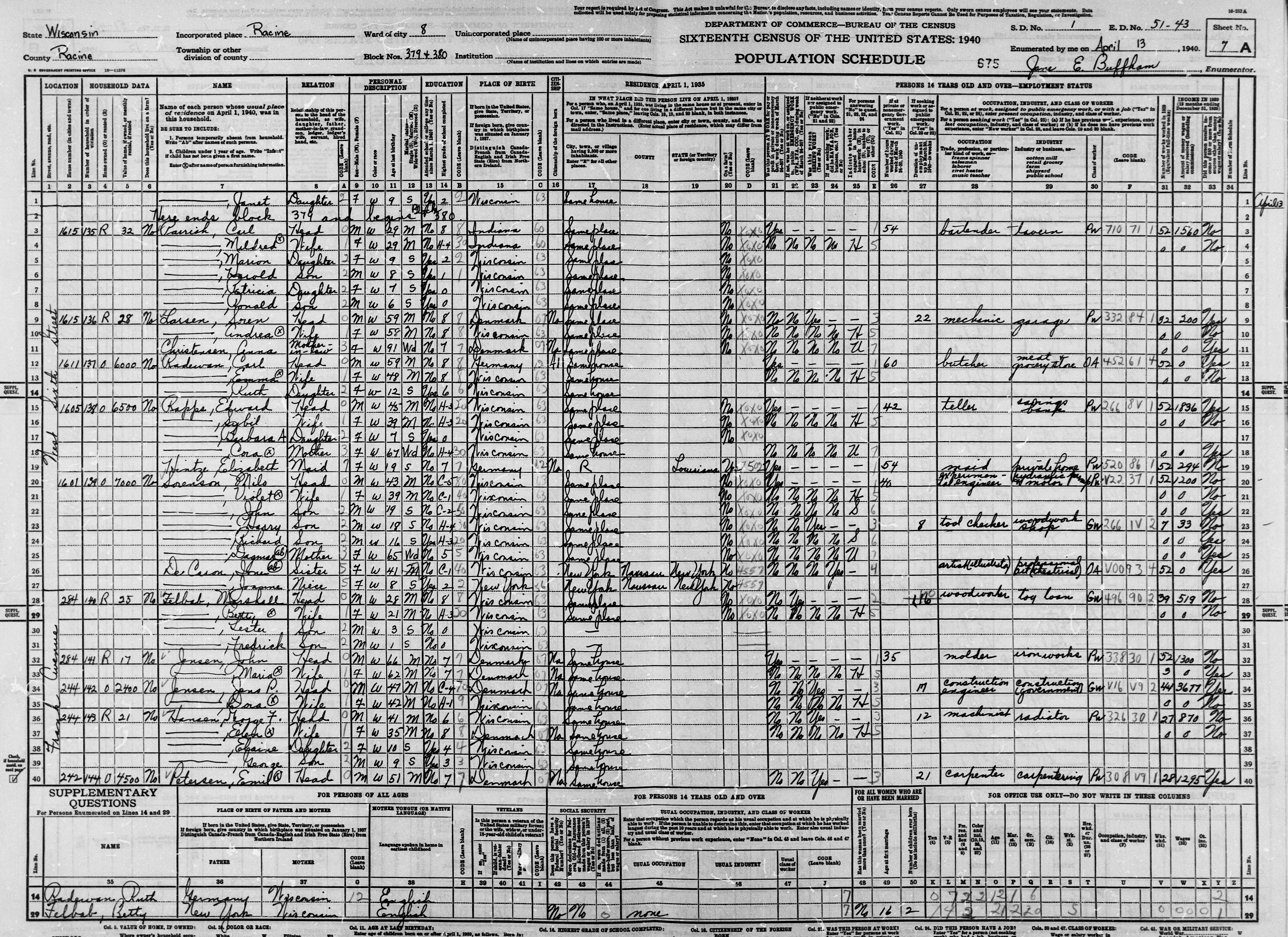 | Line | Family | Name | Relation | Sex | Color | Age | Status | School | Place | 1935 | Occupation | Father | Mother |