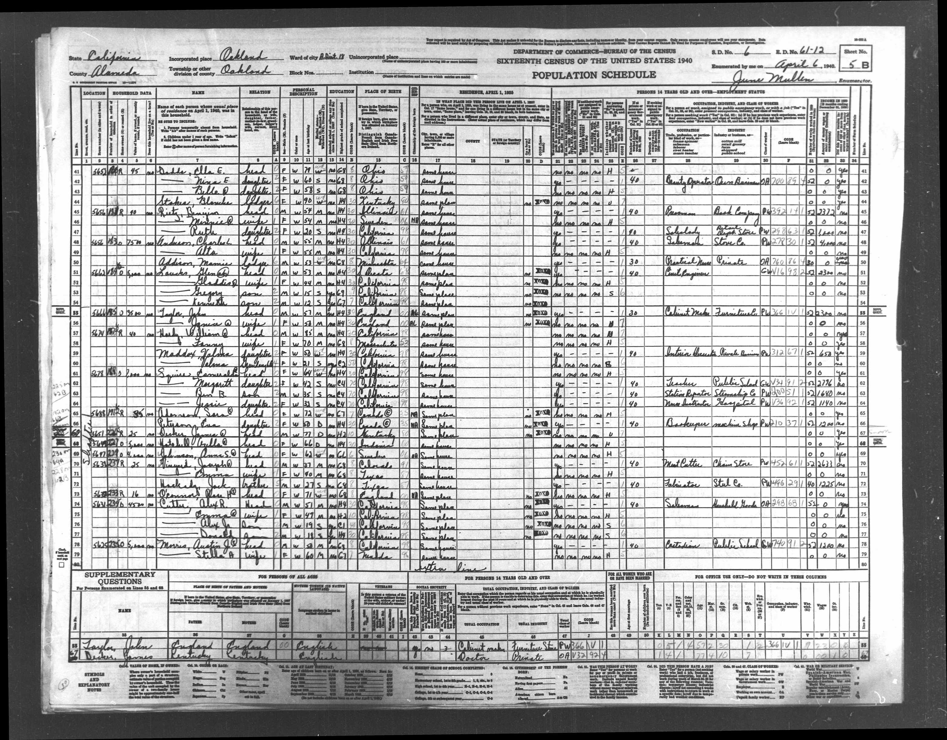 Date: April 6, 1940; Series: T627, Roll: 445, ED: 61-12, Page: 5B