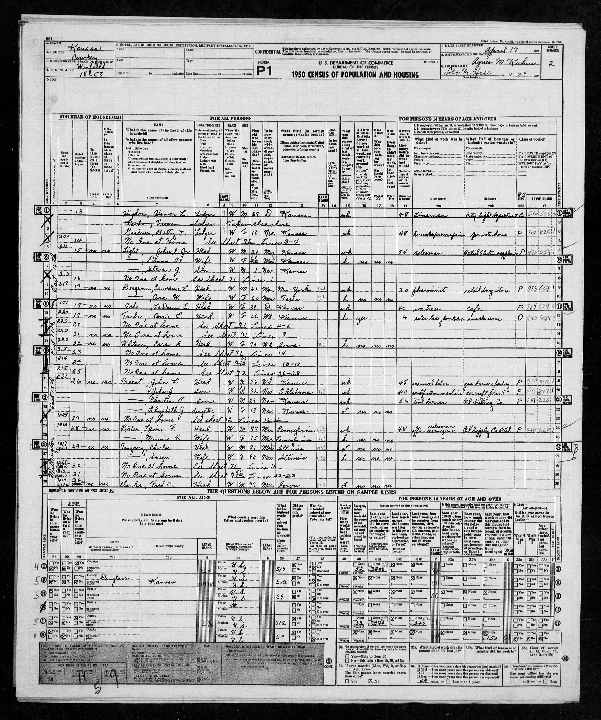 | Line | Family | Name | Relation | Race | Sex | Age | Status | Birthplace | Occupation | School | Vet | Vet War | Children |