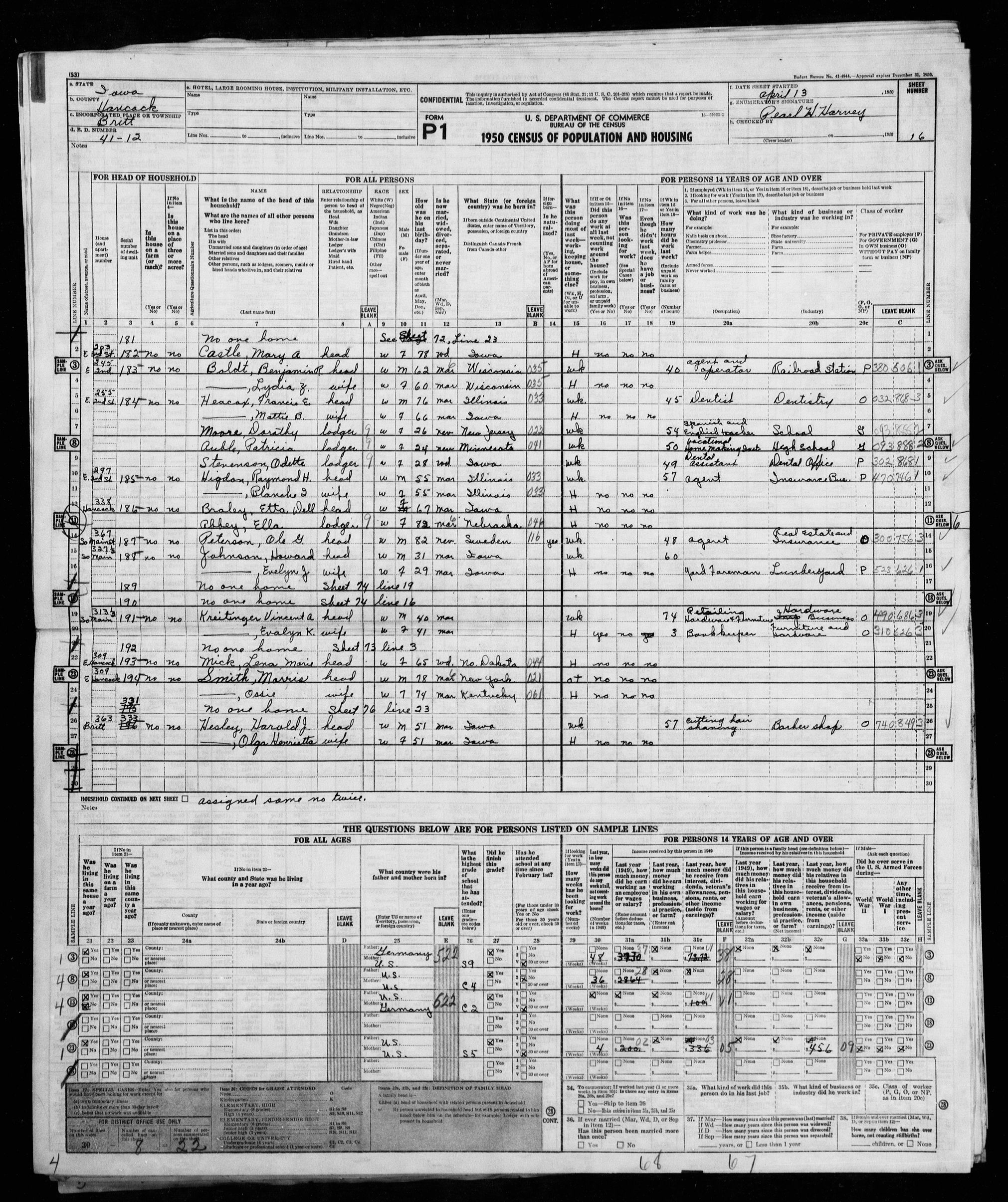 | Line | Family | Name | Relation | Race | Sex | Age | Status | Birthplace | Occupation | School | Vet | Vet War | Children |