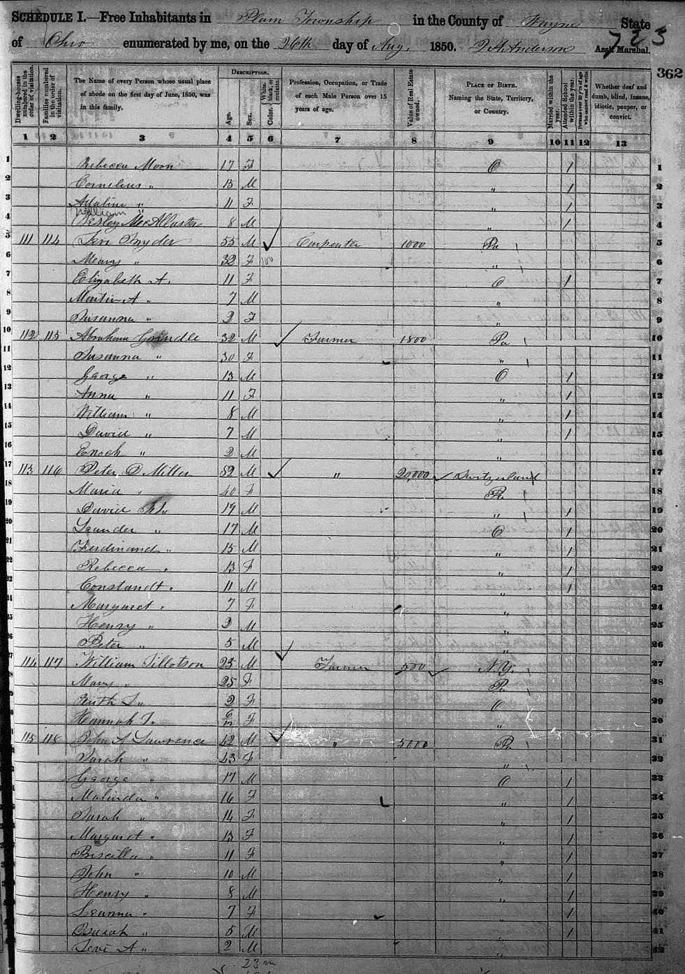 | Line | Family | Name | Age | Sex | Color | Occupation | Birthplace | XR | XW | B | D | I |