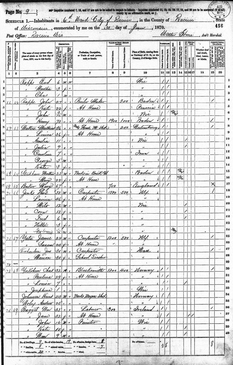 | 07 | 062 | RAPPS, Henrich (Henry) | 73 | M | W | At Home | 1900 | 1000 | Baden | X | X |