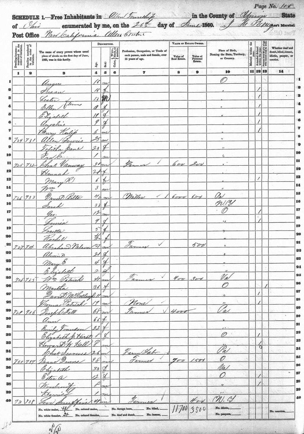 | Line | Family | Name | Age | Sex | Color | Occupation | Birthplace | XR | XW | Health |