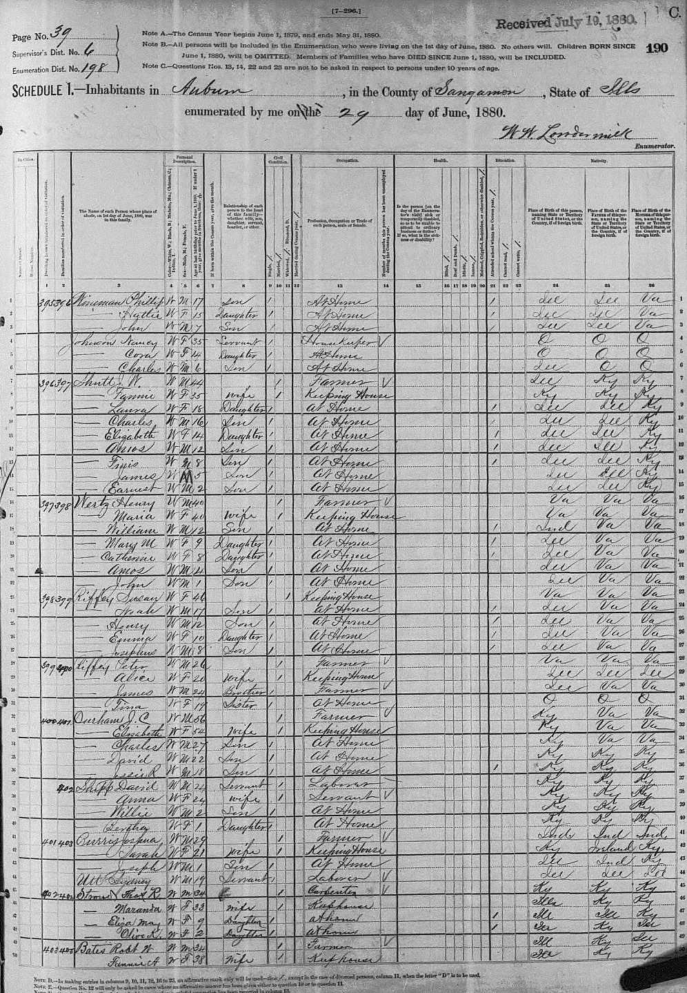 Date: June 1, 1880; Series: T9, Roll: 248, ED: 198, Page: 190C