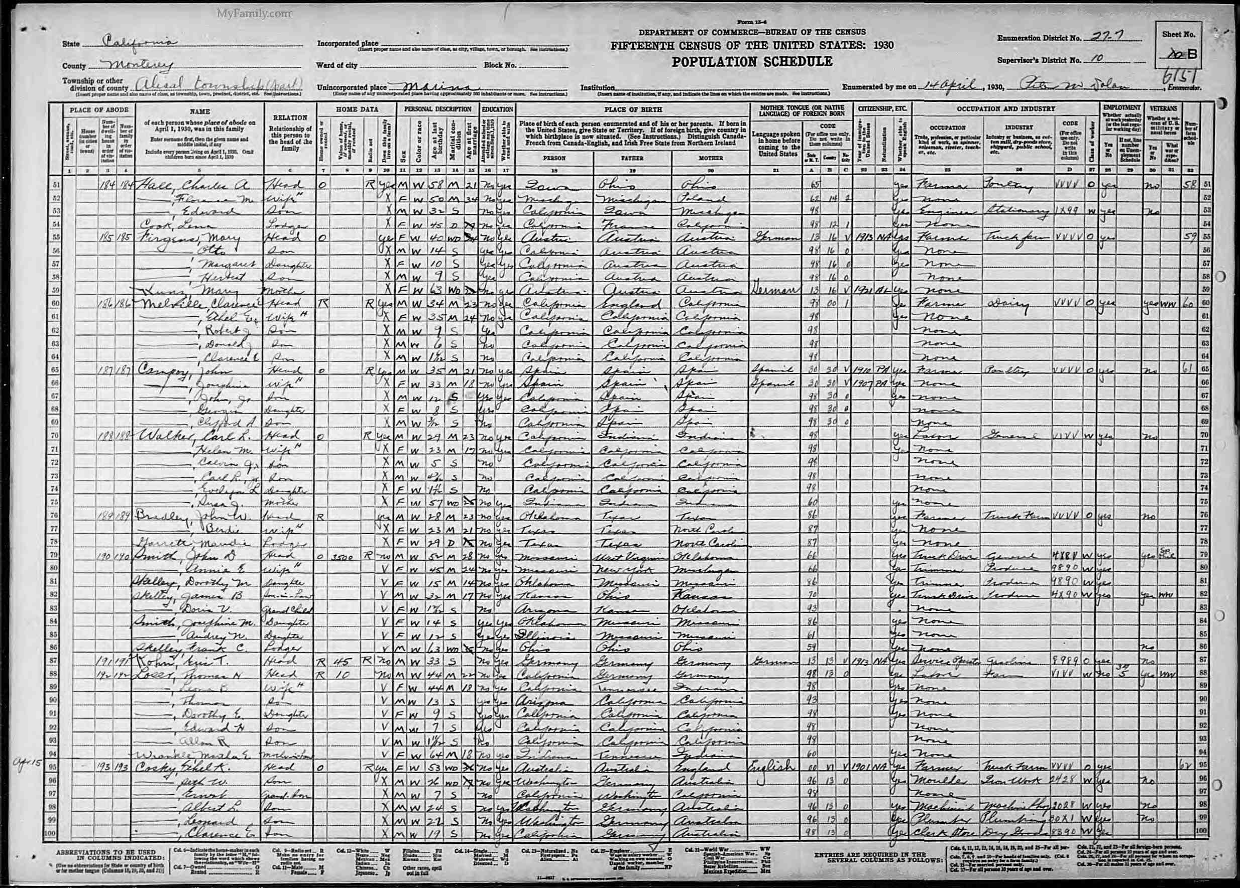 | 100 | 193 | COSKY, Clarence Eugene | Son | M | W | 19 | S | CA | Germany | Australia | Store Clerk | ||